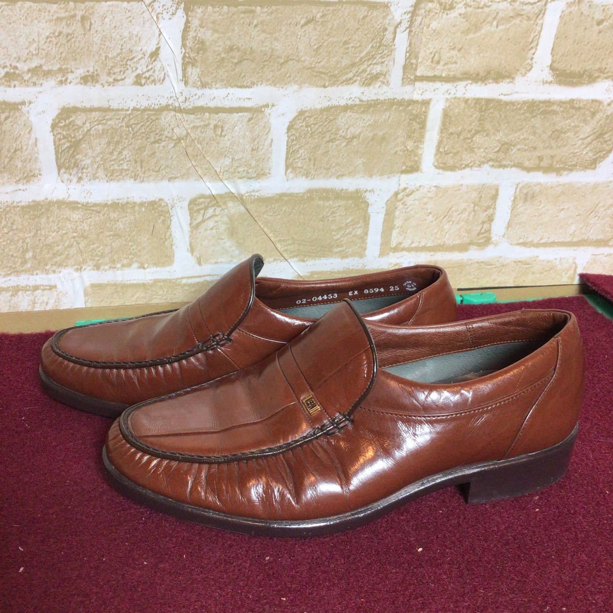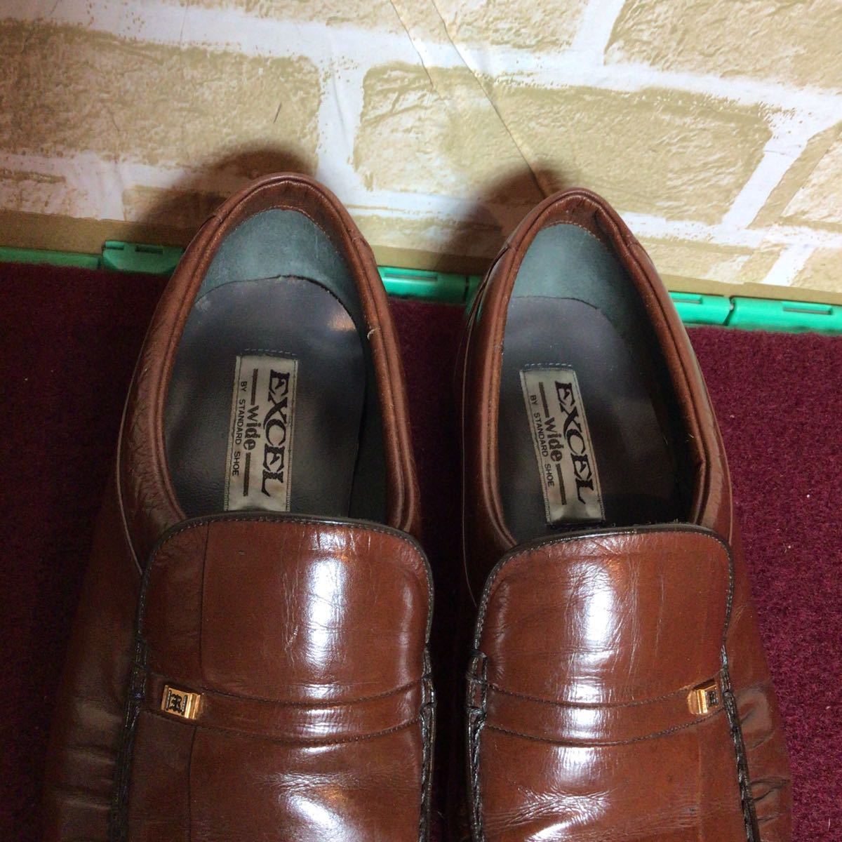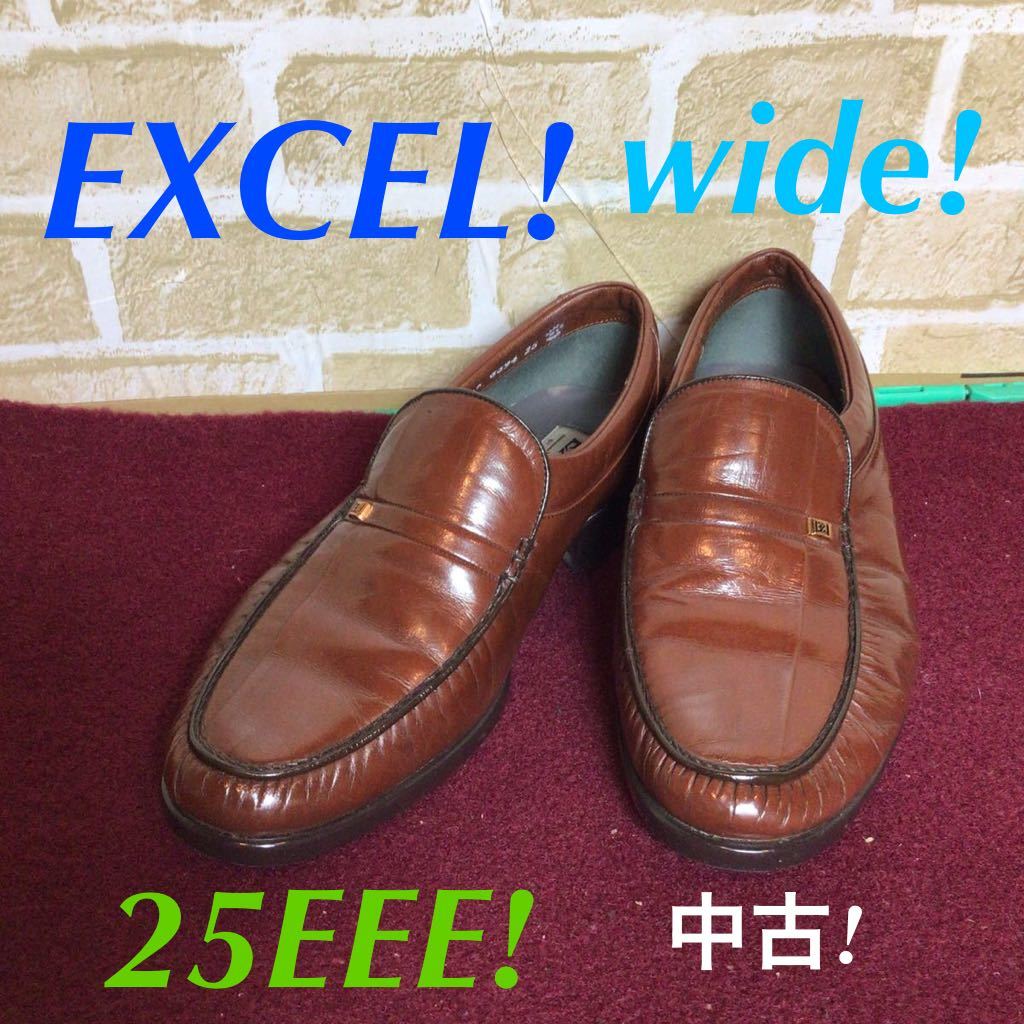 【売り切り!送料無料!】A-155 EXCEL wide! ローファー! 25㎝EEE! レザーローファー! ブラウン! メンズシューズ! 天然皮革! 中古品!