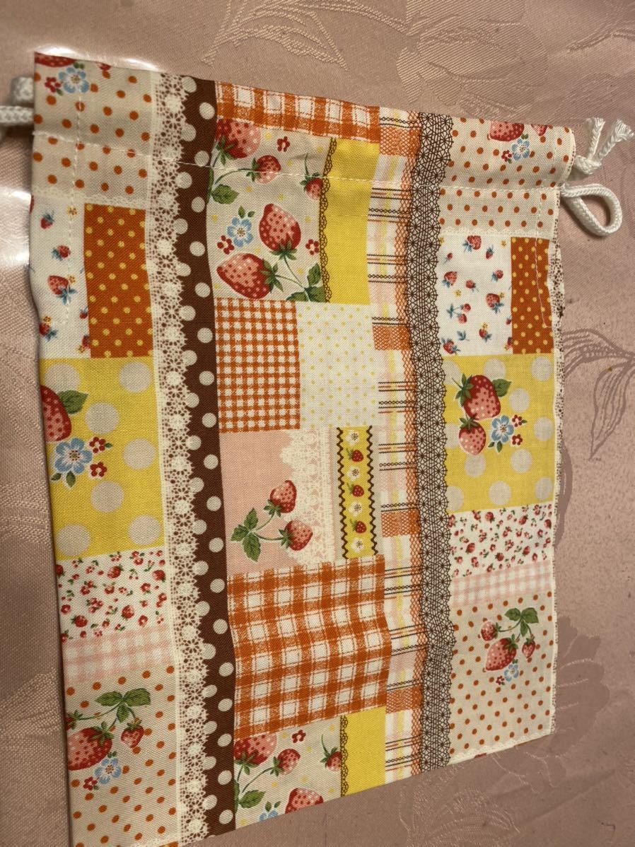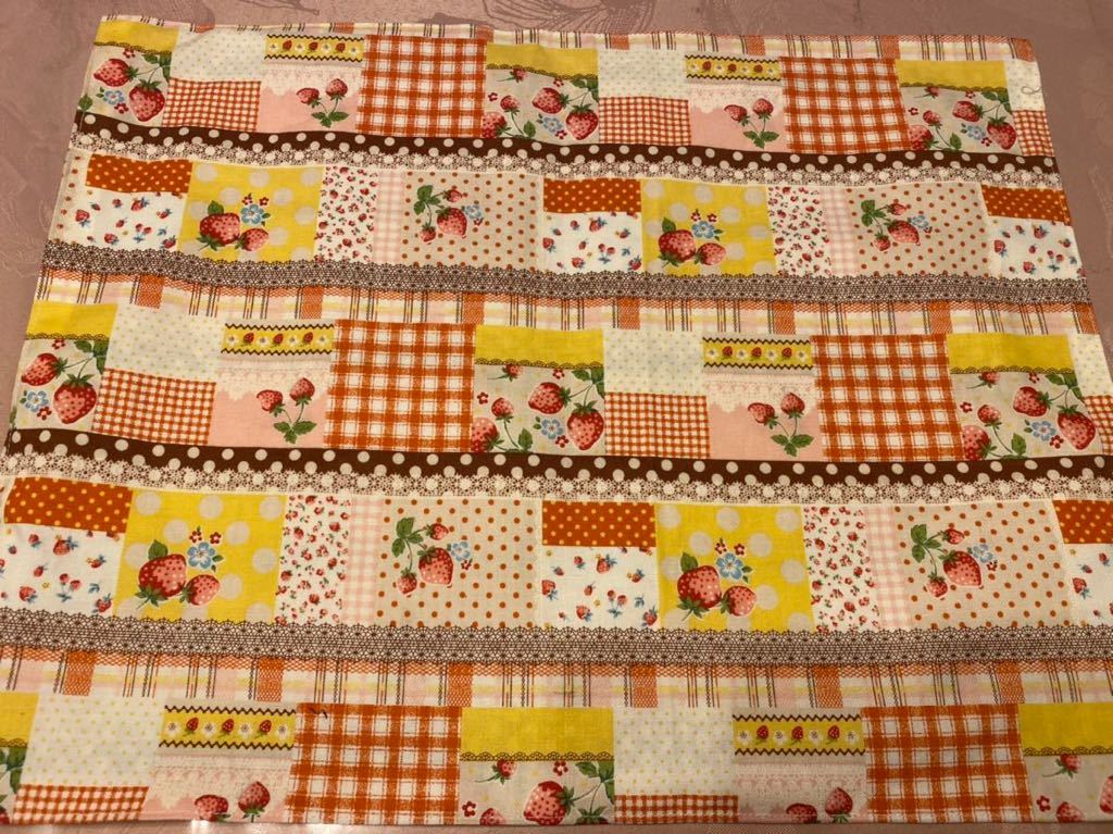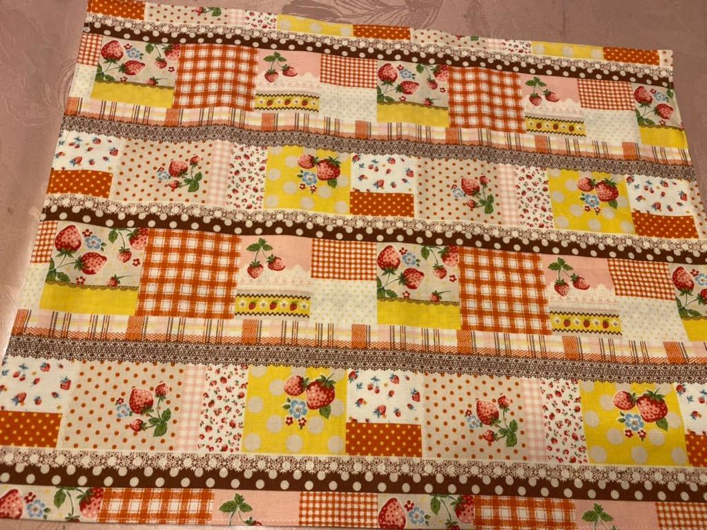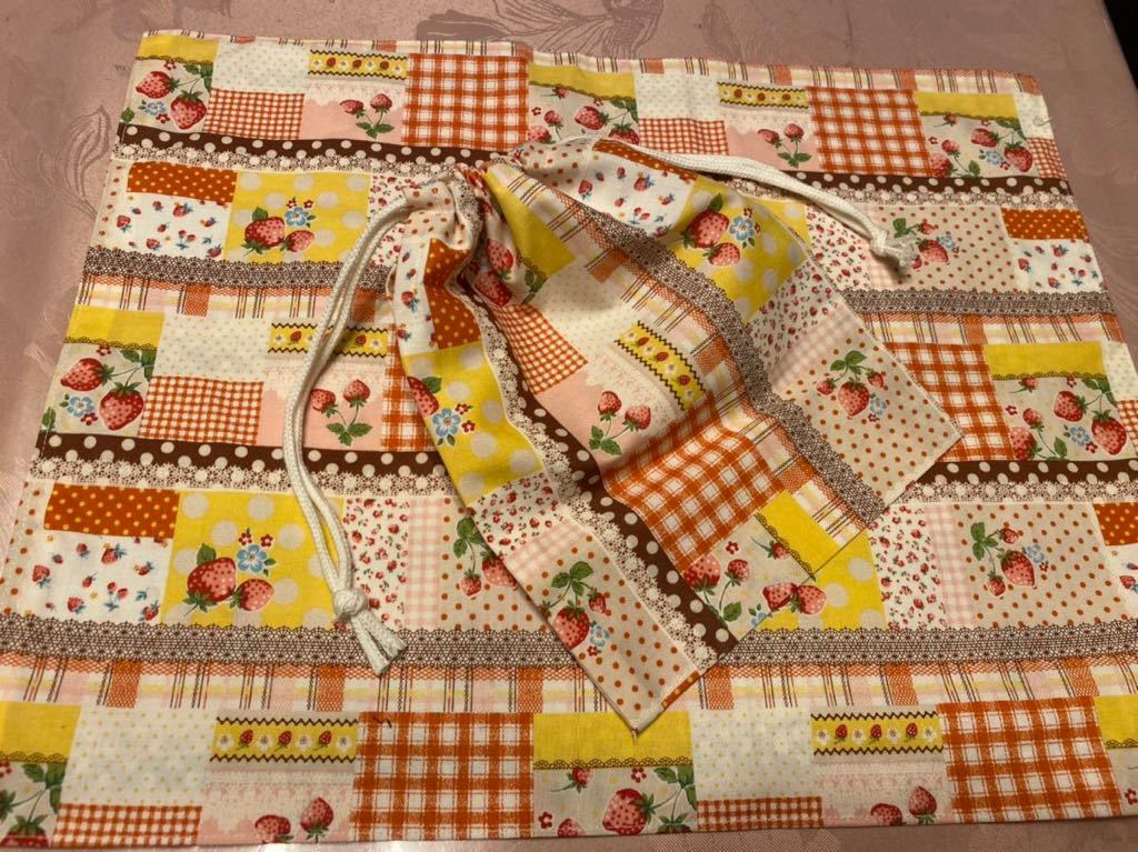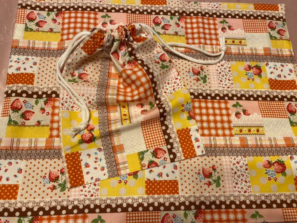 No.345 裏付ランチョンマット&巾着 ハンドメイド  35x45 イチゴ柄 女の子