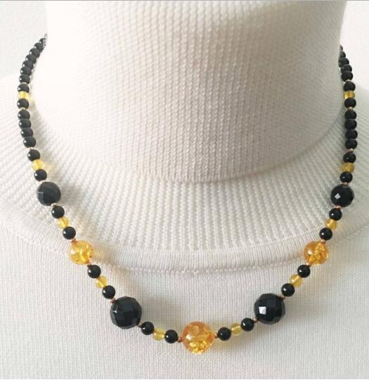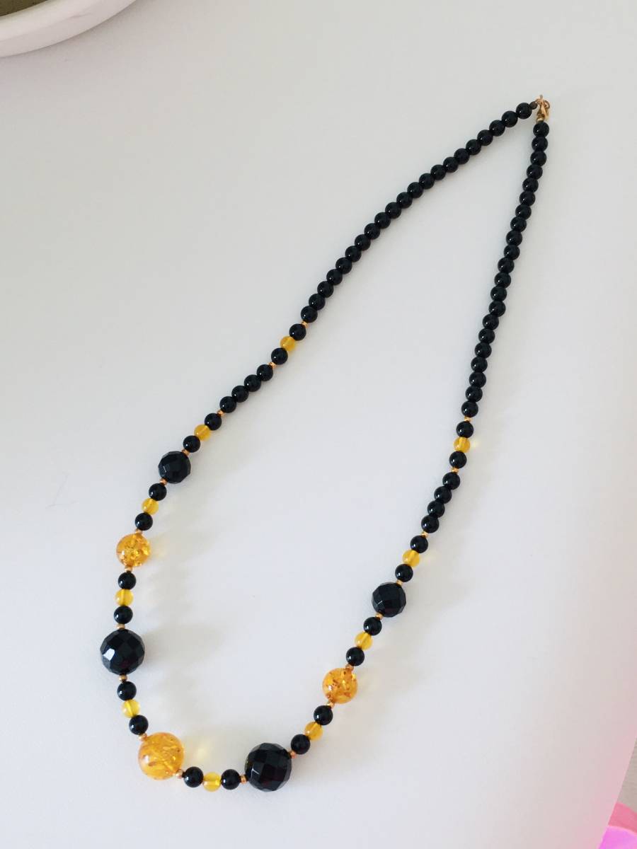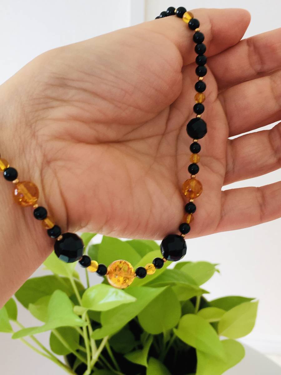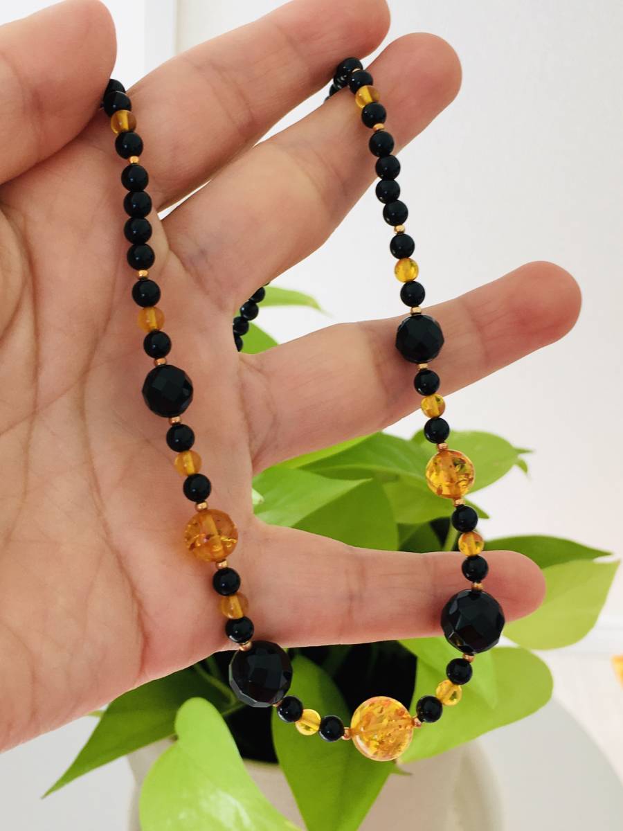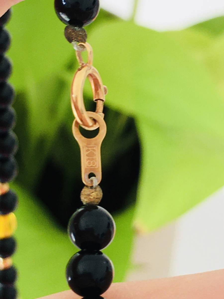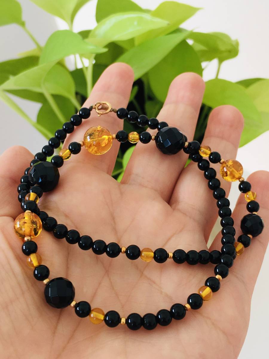 こはく 琥珀 オニキス デザインネックレス 44cm K18