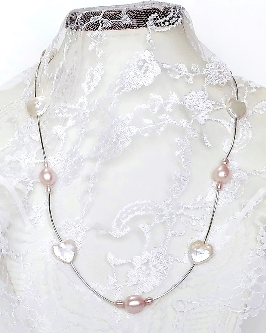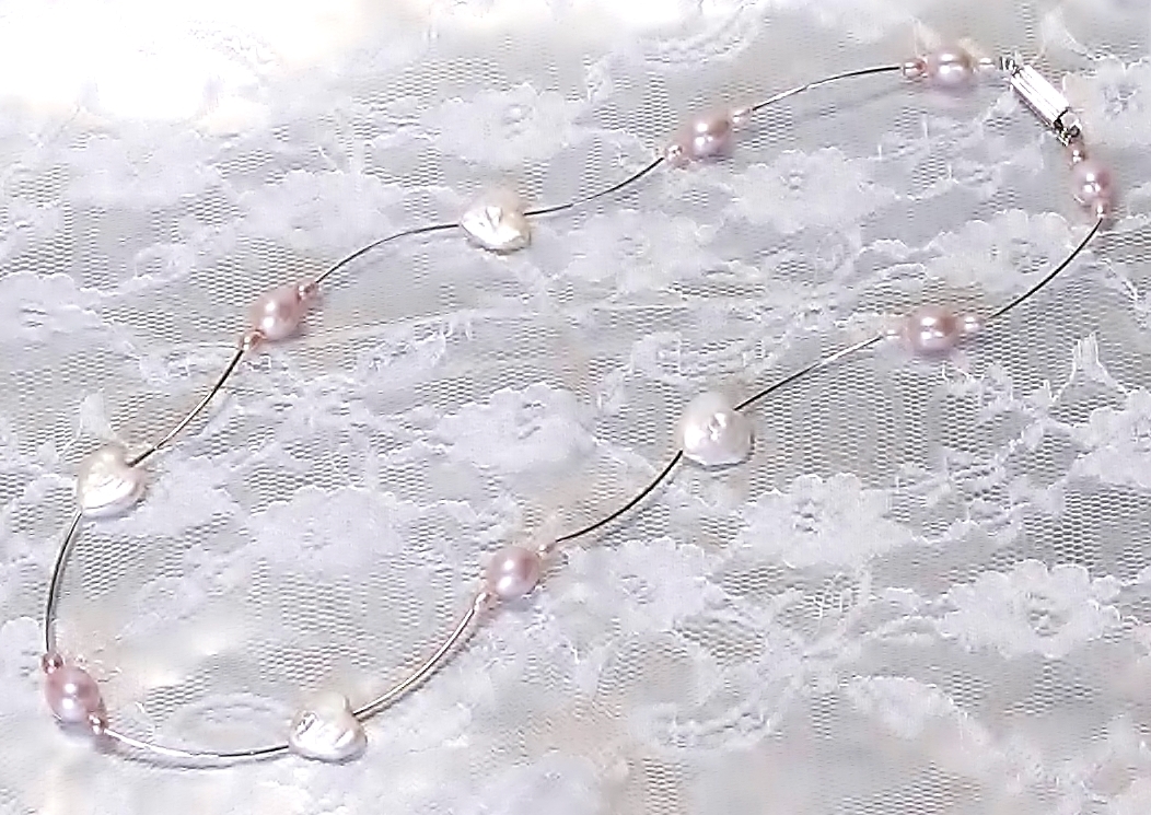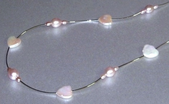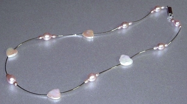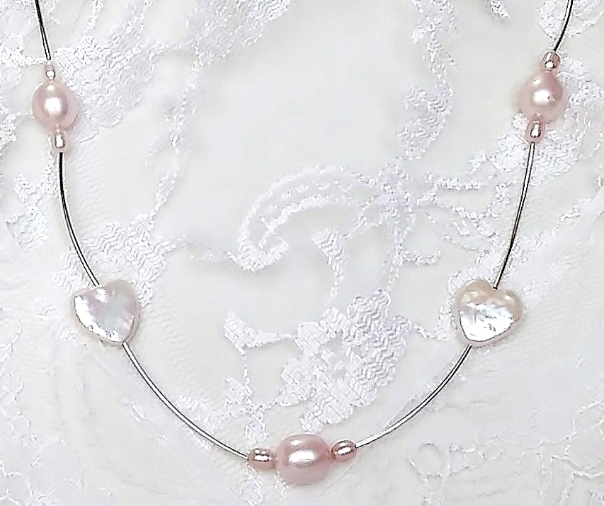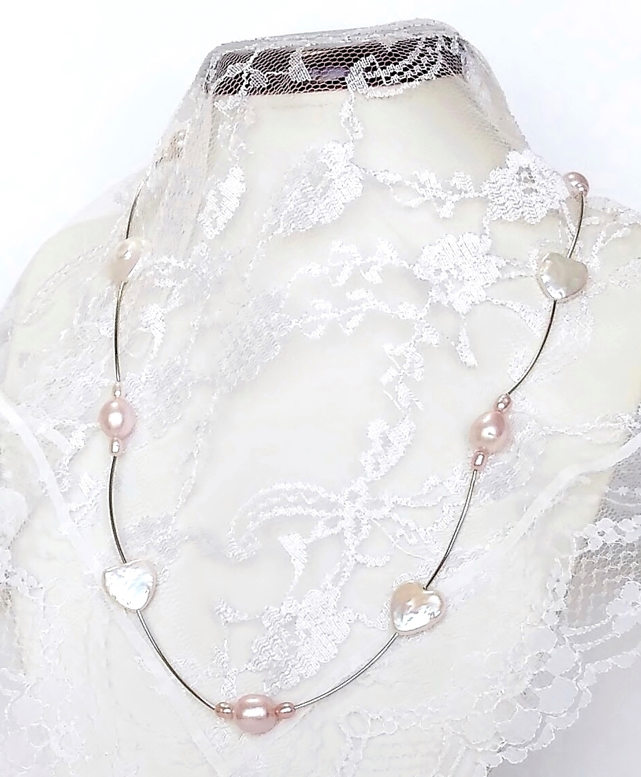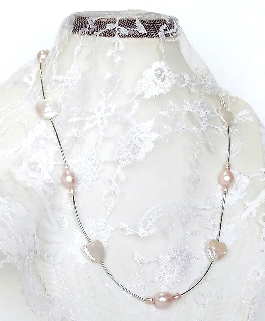 ★ハンドメイド1点もの★白ハート型パール・ピンクパールの可愛いネックレス | |||