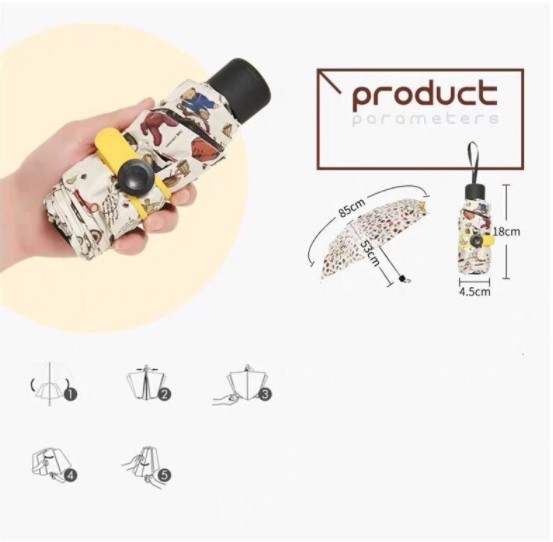 8つのリブ、軽量、5つ折りの傘で構成されています