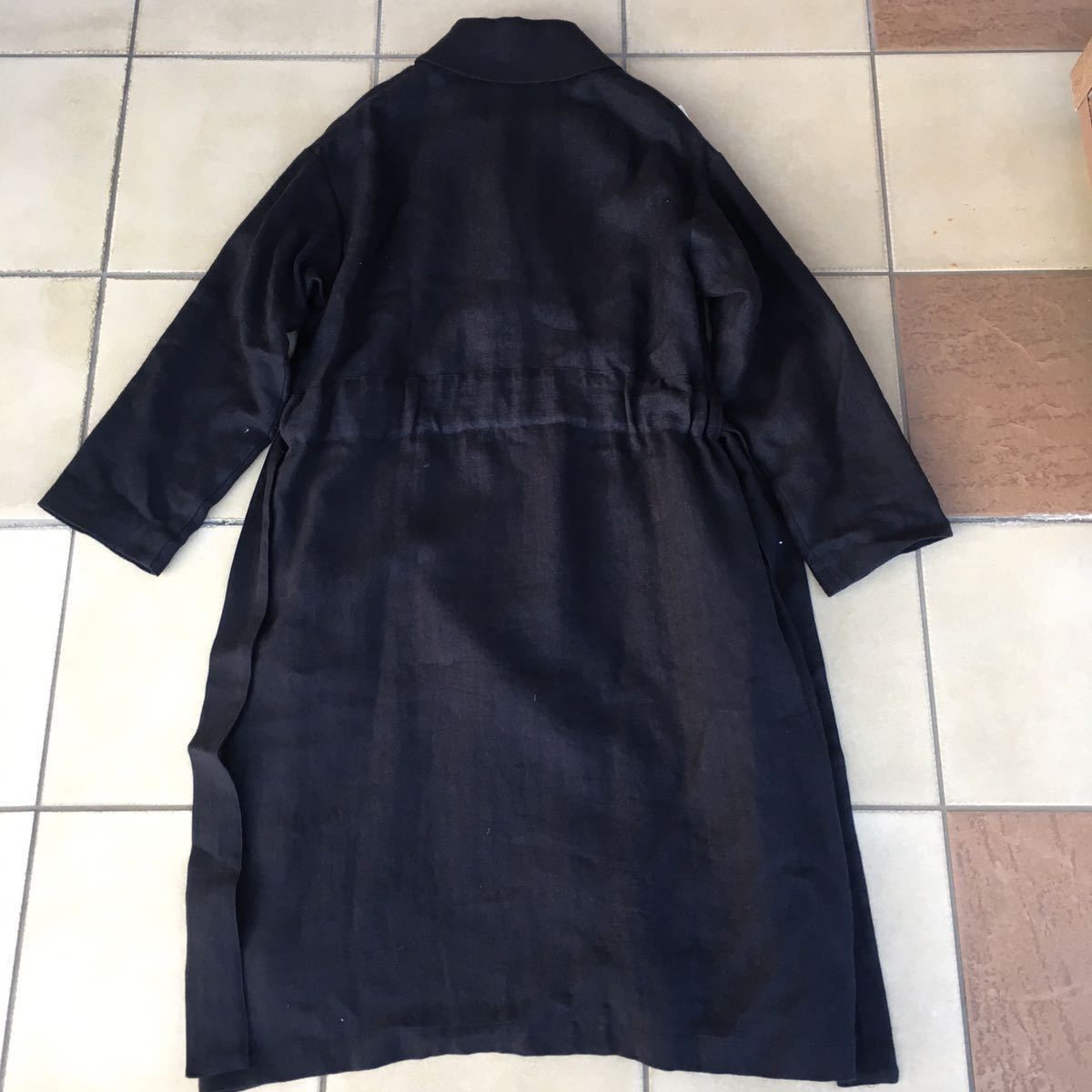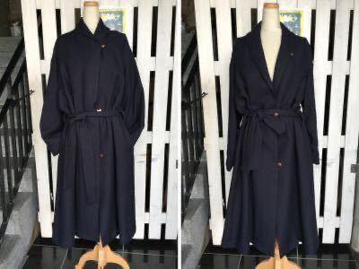 襟元で印象がガラリと変わるショールカラーコートです。秋口から春先まで長いシーズン活躍するクタっとしたリネンウール生地を使用。ヘリンボーンの織り柄が生地に奥行きを与え大人っぽい雰囲気。