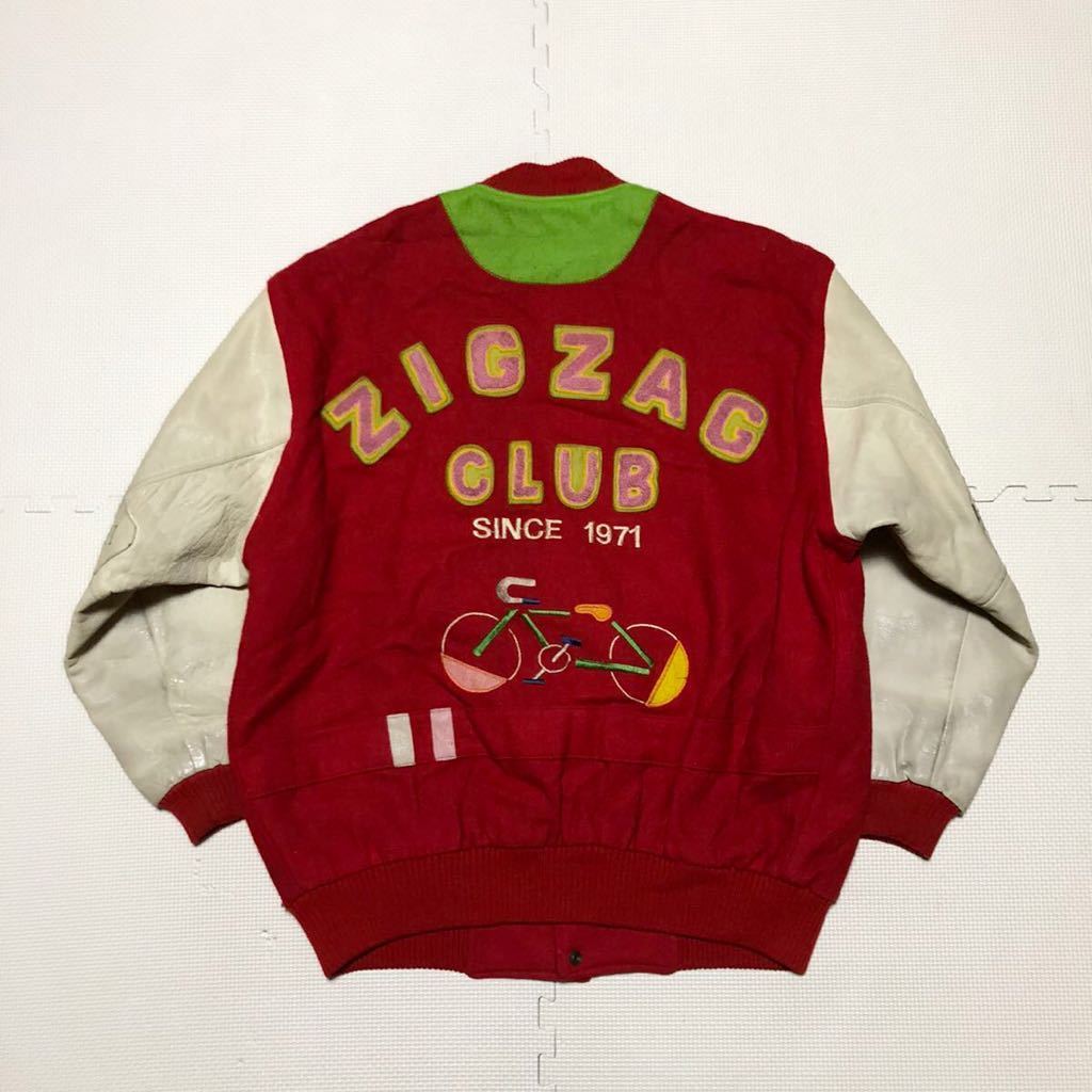 ★ ZIG ZAG CLUB ジグザグクラブ 80's 当時物 袖革 スタジャン ジャケット みゆき族 ハマトラ
