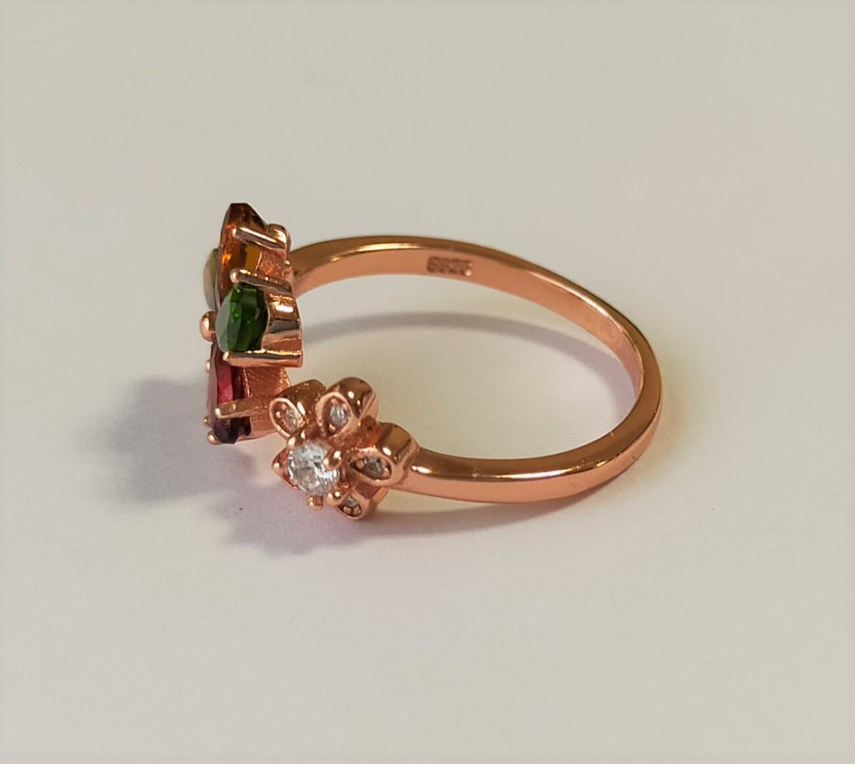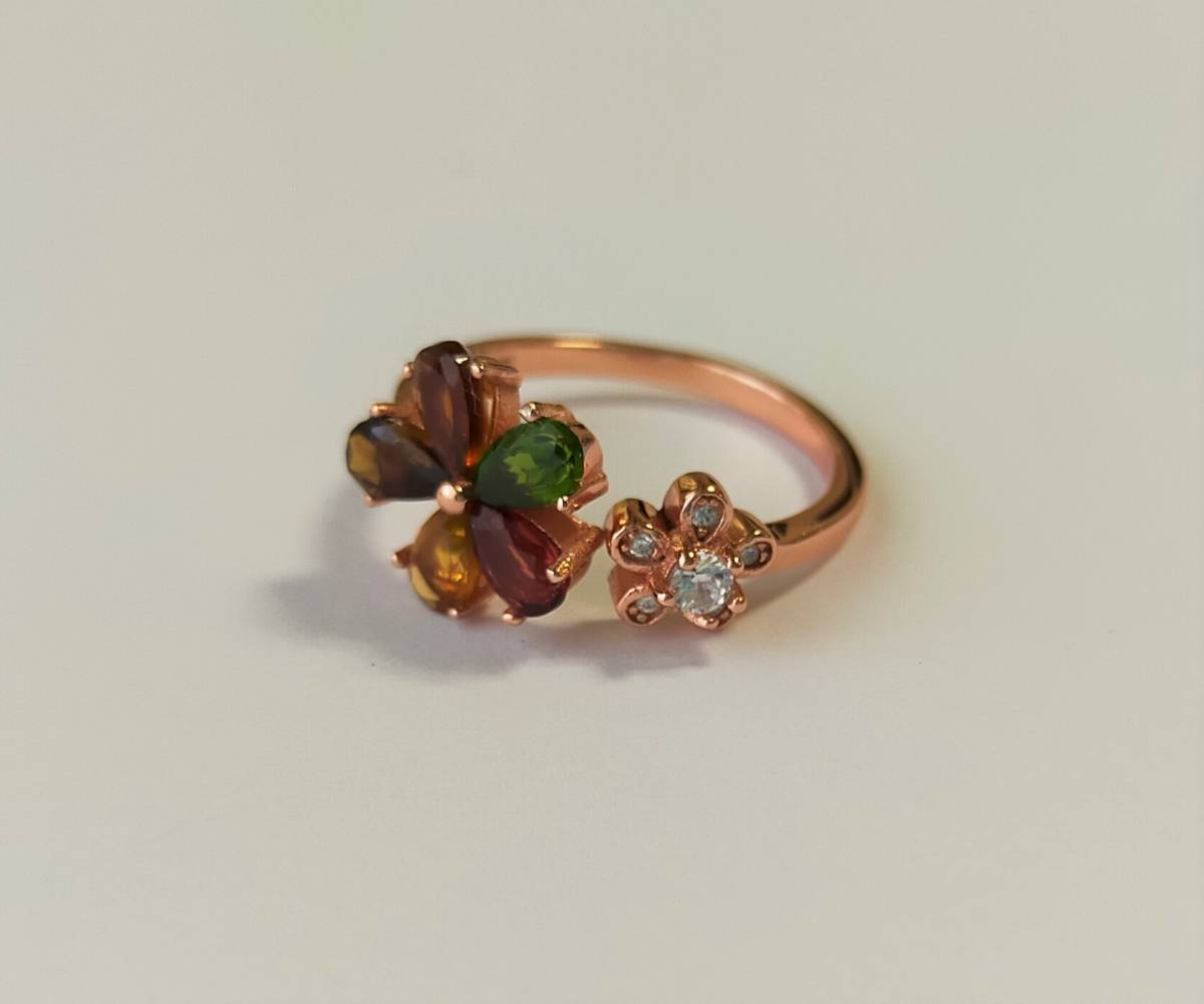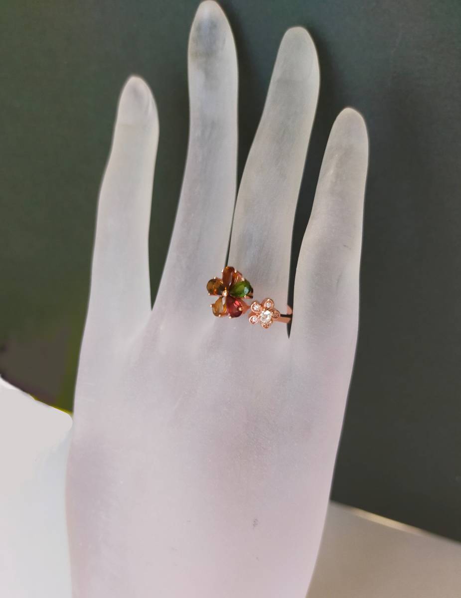 トルマリン フラワー リング 花 マルチカラー オープンリング パワーストーン ゴールド 指輪 シルバーリング S925 天然