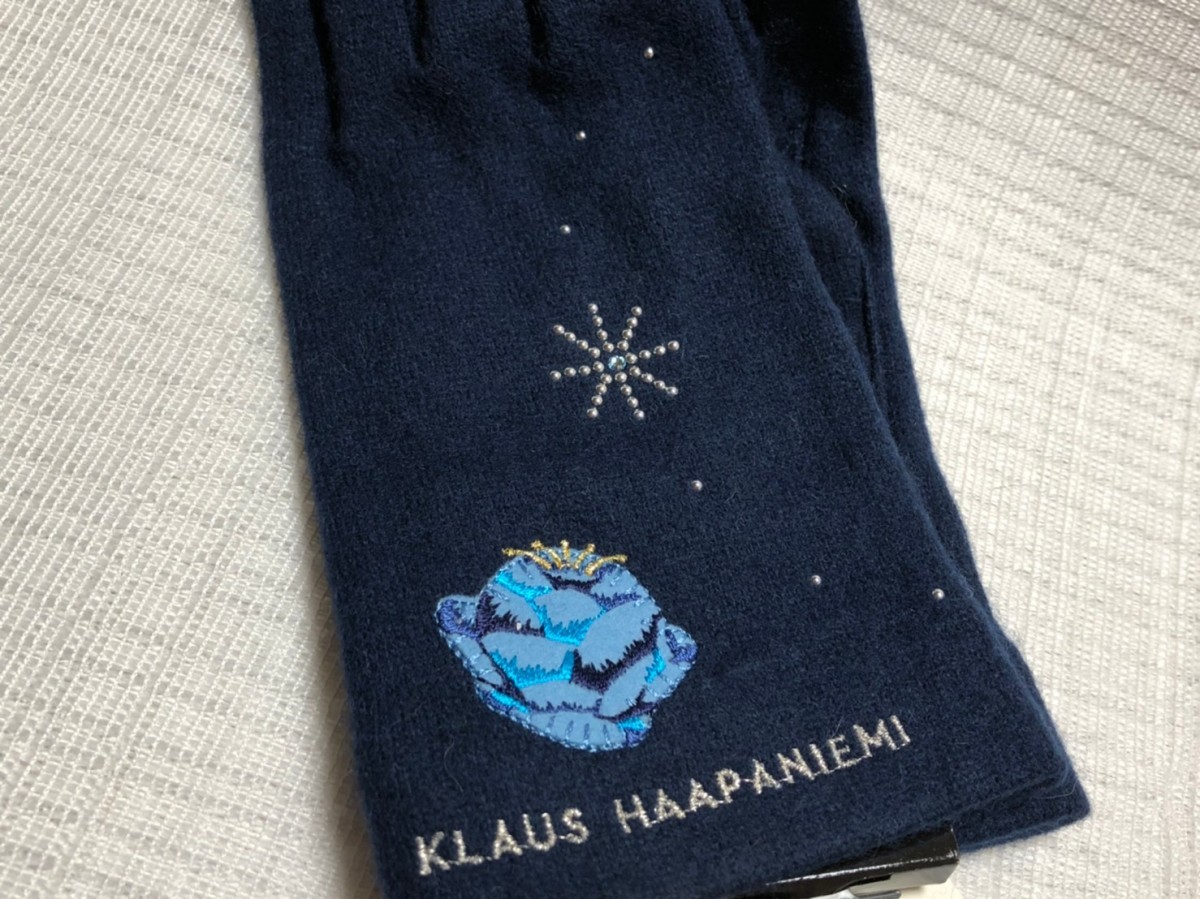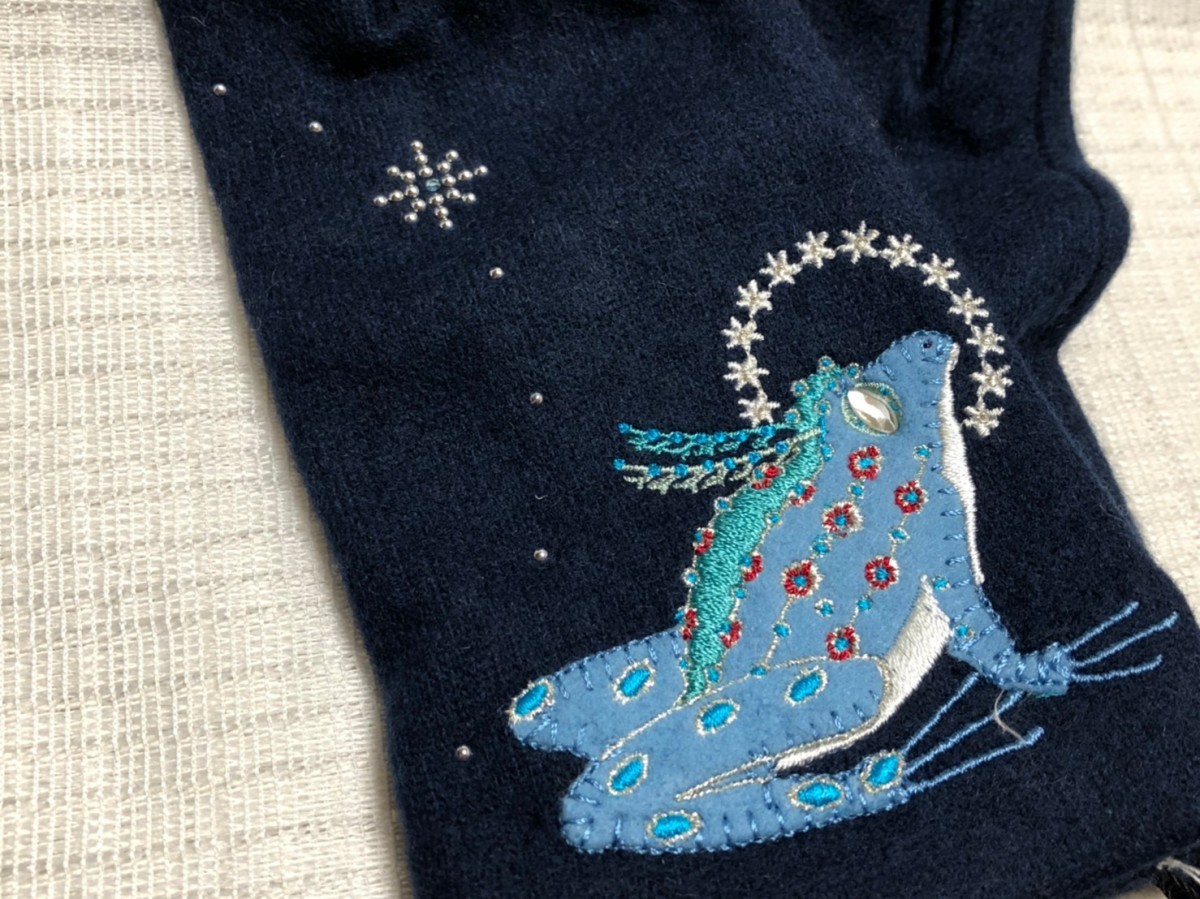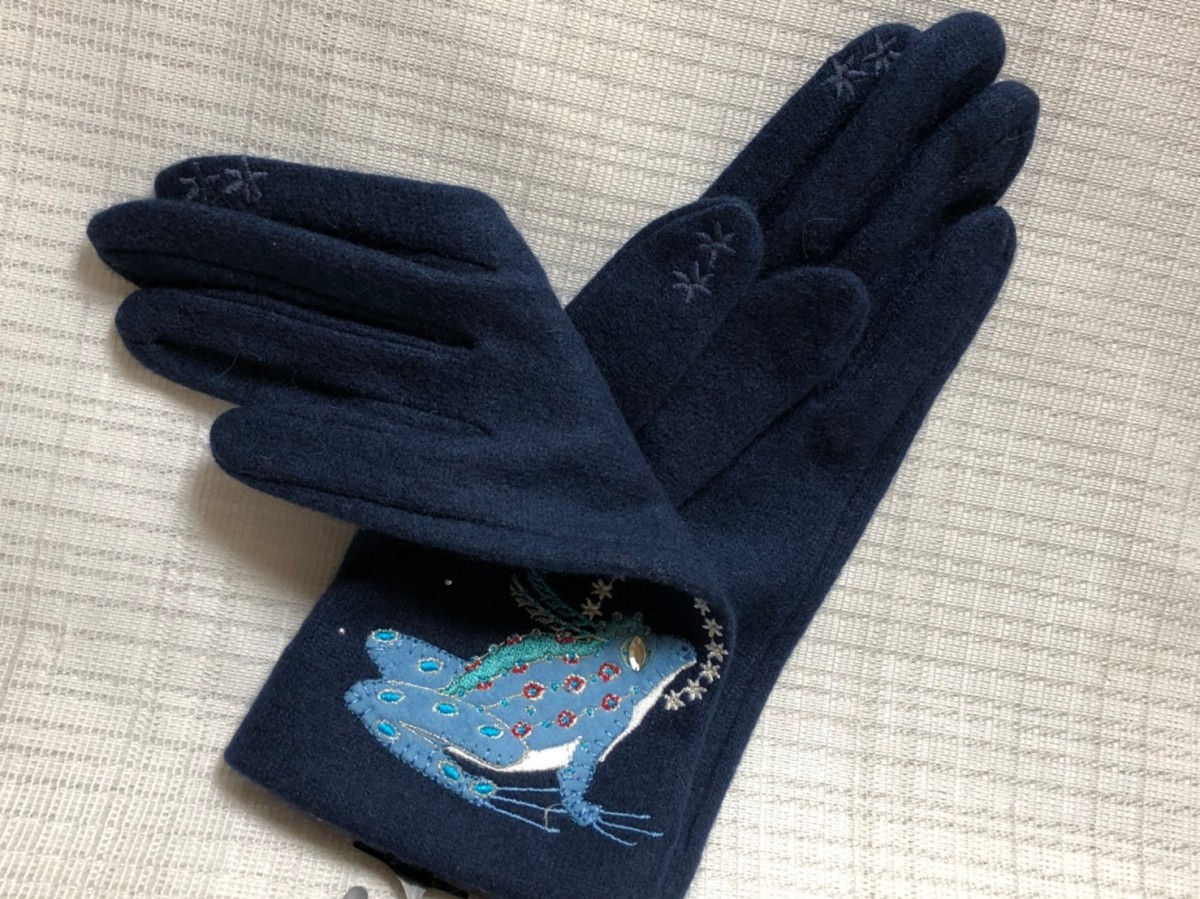 ☆新品☆クラウスハーパニエミ/可愛いニット手袋/カエル/ネイビー(スマホ対応)