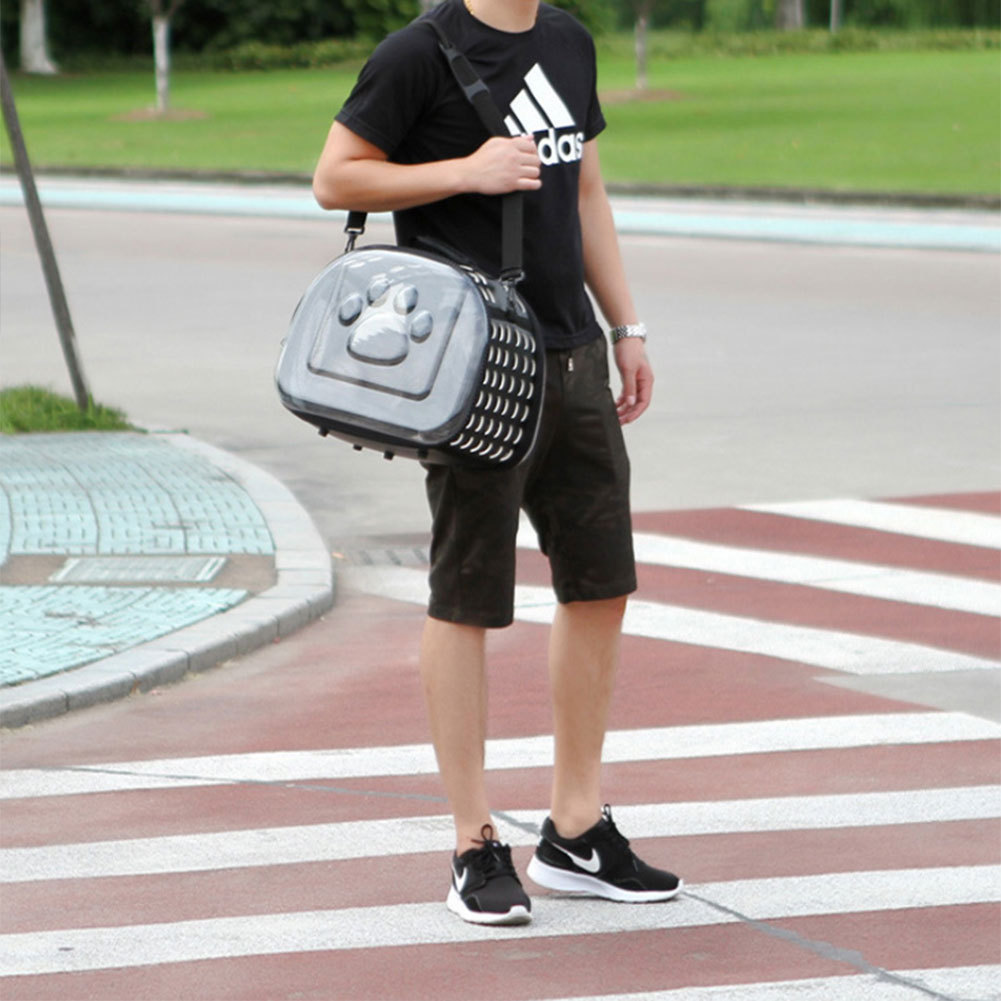 【持ち運び便利】ショルダーバンドは自由に調整可能。持ち歩きやすく長時間の移動でも肩に負担をかけません。旅行や帰省もペットを連れて楽しい時間をエンジョイできます。