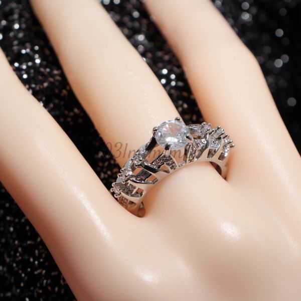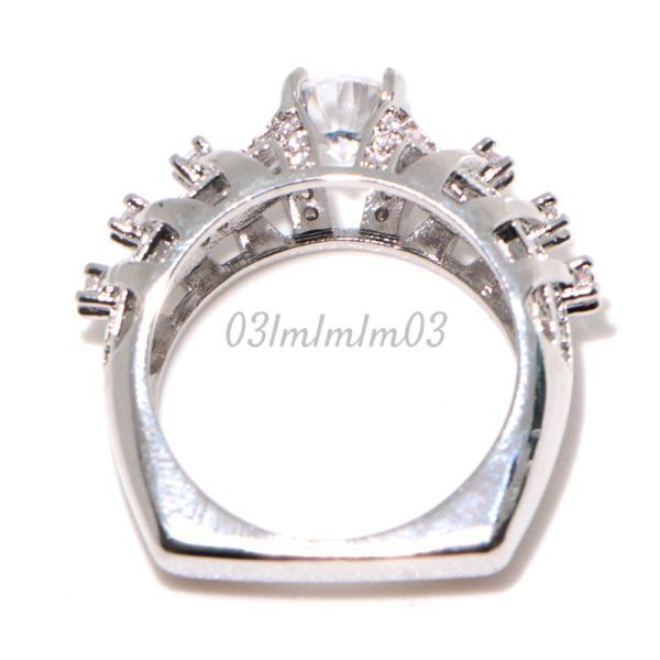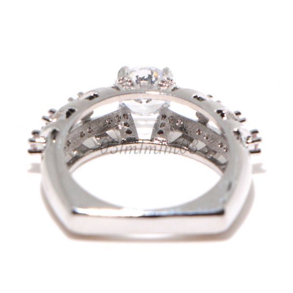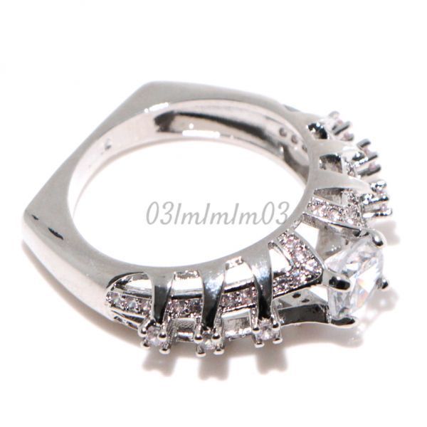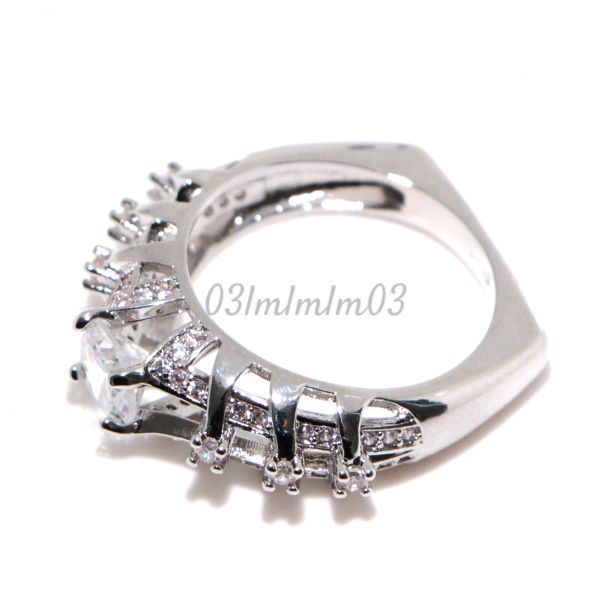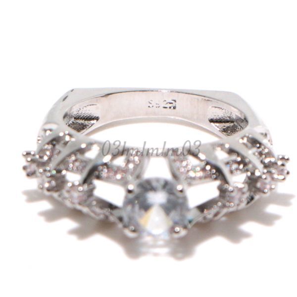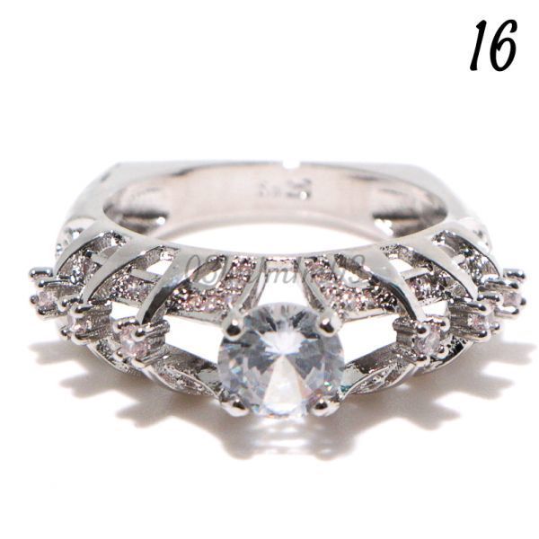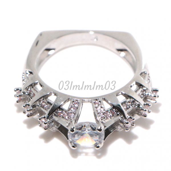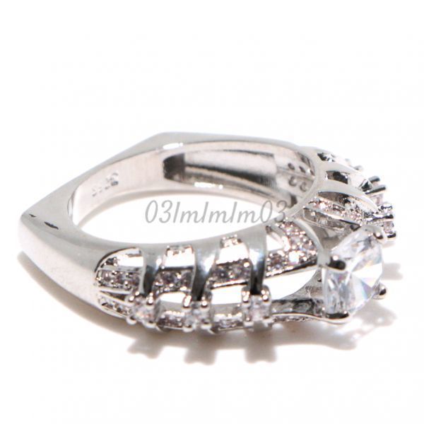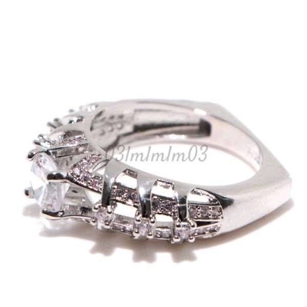 【送料無料・即決】W227 リング 16号 人工石 ホワイトサファイア ラウンド シルバー 刻印 個性的 インポート コスチュームジュエリー 指輪