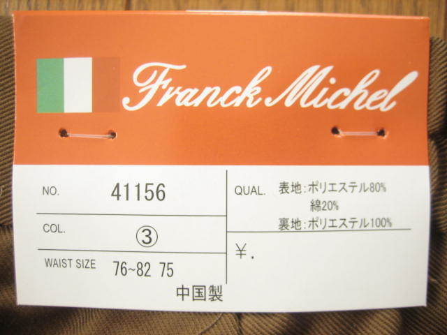 ★裏フリース付暖かいパンツ★ノータック★綿混紡素材★W67~73、股下75/タグ表示はW76~82、股下75★ウェストゴム★裾上げ済み★こげ茶系★41156③-2 ◆新品未使用◆ ⇒ ウェストの表示と実測が異なります。札の付け間違いと思います。実測値でご判断ください。ご注意下さい。 ●説明● 大手通販取り扱いブランド★Frabck Michel★の新品未使用のノータックスラックスになります。裾上げされておりますのでサイズが合えばすぐにお使い頂けます。 内側にフリースが付いております。肌寒い時期の外着にご活躍と思います。 左後ろのポケットはダミーでフラップだけがついております。ポケットとしては使えません。 綿混紡の素材になります(詳細は写真をご覧下さい)。 色はこげ茶っぽい感じに見えますが、光の加減で表現が非常に難しいので細かな表現はご容赦下さい。 タグサイズはW76~82、股下75になります。ただ、ウェストの実測値が小さいためW67~73、股下75で出品致します。実測値でご判断下さい。詳細は全長101、股下75、ウェスト34.5~38、股上29(単位はcm。ウェストはゴムで伸縮しますが、あまり伸縮しない感じですのでご了承下さい。多少の誤差はお許し下さい)になります。 新品未使用ですが、自宅保管になります。たたみシワは結構ございます。縫製が雑なところもございます。他に傷や汚れなどのわずかな見逃しがありました際は何卒ご了承下さい。お値段重視で必ず、ご了解頂きご検討下さい。以上、少しでもお気になされる場合はご遠慮下さい。 ご理解頂ける方お安く出品しますので、宜しければどうぞ。 ・写真は共通で使用しております。ご了承下さい。 ●発送● 発送は、佐川急便になります。送料は以下になます。同梱発送のご希望の場合は送料が変わりますのでご質問下さい。 ★関東 ⇒ ■770円 ★南東北・信越・北陸・中部 ⇒ ■880円 ★北東北・関西 ⇒ ■990円 ★中国・四国 ⇒ ■1,100円 ★九州 北海道 ⇒ ■1,320円 【沖縄・離島は別途になりますのでお問い合わせ下さい】 ★送料のご負担をお願い致します。 佐川急便お受取時間帯指定サービス 午前中、12~14時、14~16時、16~18時、18~20時、18~21時、19~21時 ご希望ございましたらお申し付け下さい。 ◎ご入札をご検討される方、ご落札された方へ◎ ★注意事項 ①ご落札より3日以内のご連絡、7日以内のお振込みが確認できない場合はお取り消しとなりますので、悪しからずご了承下さい。取り置きの場合も7日以内でお願い致します。恐れ入りますが、お受け取り頂けましたら、速やかな受取連絡をお願い申し上げます。 ②疑問がありましたらご質問をお願い致します。ご納得の頂きましてご入札をお願い致します。 ③説明欄をご一読下さい。 ④自己紹介欄をご一読下さい。個人的な事情により、ご連絡が遅れる事もあるかもしれませんので、、。 ⑤お品物は良く確認しておりますが見落としている傷、ホツレ、汚れ等ある場合もございます。その際は何卒ご容赦下さい。神経質な方や完璧な商品をお求めの方は入札をご遠慮ください。ご了解頂きご検討をお願い致します。 ⑥画像のお色はPC環境により実際のお色と多少の違いが生じる場合がございますがご了承願います。 ⑦入札・落札後のキャンセル、商品のクレーム・返品はお断り致します。ただ、当方の不手際がございましたらその限りではございません。 ⑧評価をされました方に対してのみ、評価をさせていただいております。落札された方から「評価をしないでほしい」という連絡を頂くことがございますがその場合は当方にも評価をなさらないよう宜しくお願い致します。 ⑨新規IDの方は、ご入札をご遠慮下さい。お取引希望の方はご入札前のご質問よりご連絡いただければ、お取引可能です。 ⑩発送方法は説明文記載の発送方法になります。その他の方法をご希望の場合ご質問頂けましたら検討致します。 以上、勝手を申しますが、円滑なお取り引きのため何卒よろしくお願いします。 |
