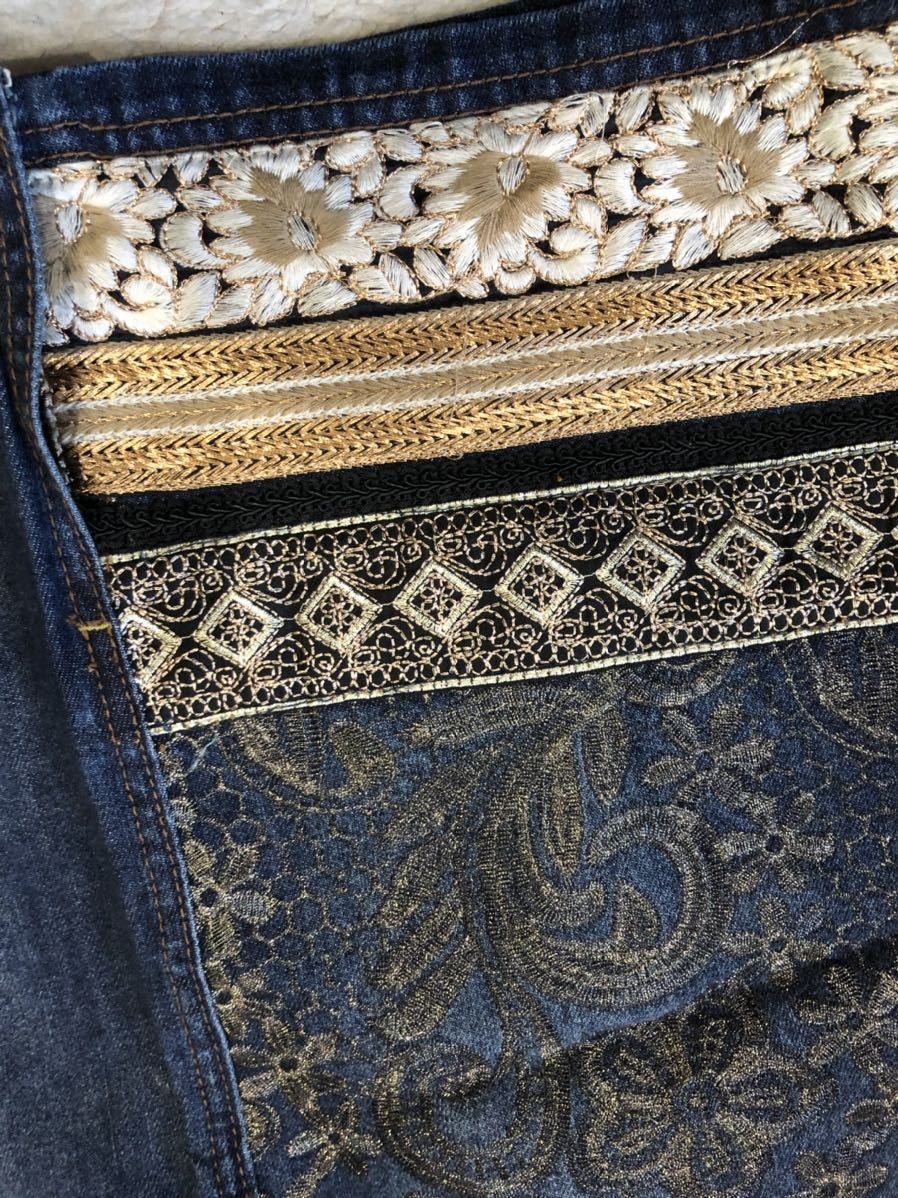 センスの良い刺繍使いのデニムスカート。カジュアルになりすぎず使い勝手もよさそう。