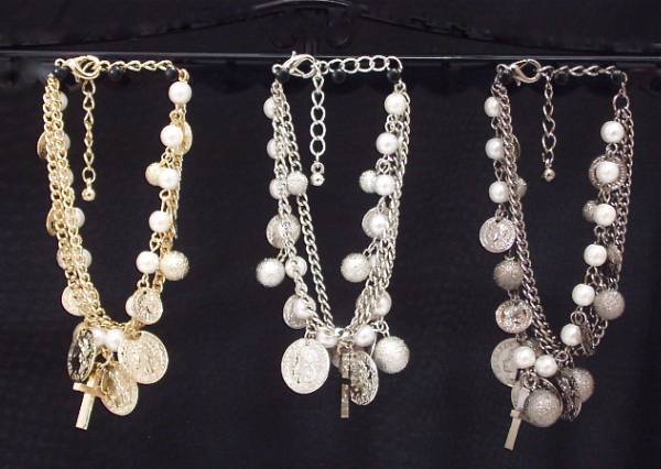 新品・未使用 全長17センチ アジャスター6センチ クロス:縦1.8センチ 横1.1センチ コインパーツ:径1.5センチ パール:0.6センチ 素材 ニッケル ロジウムメッキ ※画像はお色見本となります。 お譲りするのはタイトルのお色です。 他のお色はデザイン見本となります。 |