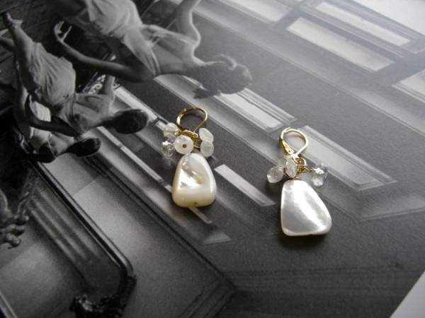 魔法にかけられて・・シリーズです♪妖精の涙・・ムーンストーンや水晶、マザーオブパールのピアスです♪白でまとめて神秘的な表情です♪5ミリから6ミリ位までのボタンカットのムーンストーンや水晶にトップは18×13ミリ位のマザーオブパールです♪長さは4センチ位です♪イヤリングにも変更出来ます♪お揃いのネックレスやブレスレットも出品しています♪シンプルで飽きのこないいつまでも着けられるデザインを考えて作りました!ハンドメイドをご理解頂いてノークレーム、ノーリターンでお願いします