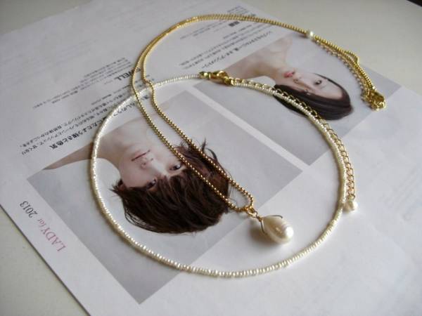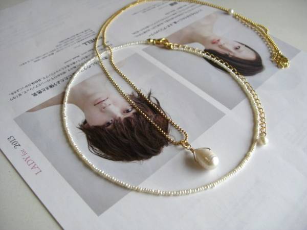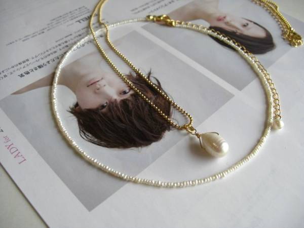 ビター・ガール・・シリーズです♪おめかしパール・・可憐な淡水パールのネックレス2点セットです♪極小の淡水パールとドロップの淡水パールがロマンチックな表情です♪極小の芥子パールは2×3ミリ位です♪長さは38センチ+アジャスター12センチで最長50センチ位です♪ドロップパールは14×10ミリ位です♪華奢なボールチェーンを合わせました♪長さは75センチ+アジャスター10センチで最長85センチ位です♪単品やブレスレットやイヤリングも出品しています♪♪シンプルでいつまでも着けられるデザインを考えて作りました!ハンドメイドをご理解頂いてノークレーム、ノーリターンでお願いします