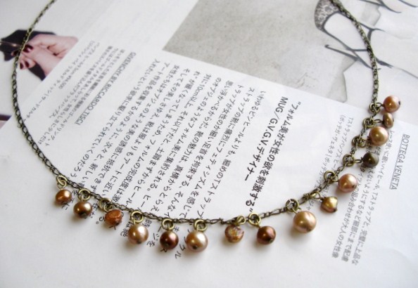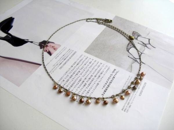 アンティーク仕様・・シリーズです♪大人色のパール・・シックなブロンズ色の淡水パールのネックレスです♪4ミリから6ミリ位までのポテトやバロックの淡水パールはランダムに紡いでいます♪長さは55センチ+アジャスター12センチで最長67センチ位です♪お揃いのネックレスやブレスレットも出品しています♪シンプルで長く着けていただけるデザインを考えて作りました!ハンドメイドをご理解頂いてノークレーム、ノーリターンでお願いします
