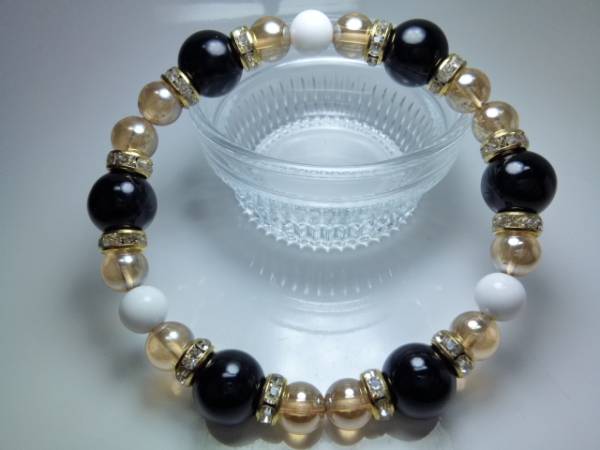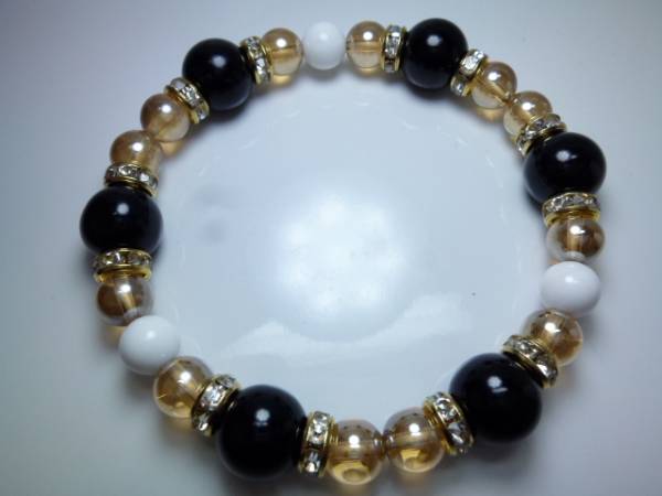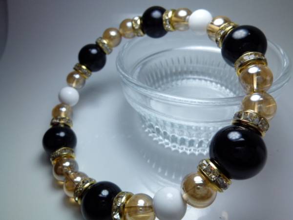 ご覧いただき誠にありがとうございます。 オニキス: 邪念まみれになって揺れる心を、しっかりつかまえて重しとなり、 余計な念を払いよけ、意思を強めてくれるとされます。 心と身体に一本の柱を通すように安定させるので、 自らの持つ本来の実力を遺憾なく発揮出来るようになると言われます。 冷静に物事を見、適切な判断で良い方向へ場を導く支えとなるとされています。 瞬時の判断が必要なスポーツ、行き詰まった仕事の打開、自分自身への問いと答えなどのお守りにどうぞ。 ホワイトオニキス: 「オニキス」と呼ばれる石のうち、白いものをさします。 「白」は純粋無垢、汚れを寄せ付けない象徴であり、また「希望の光」の意味合いも持ちます。 優れた浄化力と優しげな風合いを合わせ持ち、 心身のリーディングストーンとして無理のない癒しを導くとされます。 疲れがたまった時、心機一転したい時、小さな幸せで満たされたい時などのお守りにどうぞ。 水晶: 万能のパワーストーンとしてお馴染みです。邪気祓い、場の浄化の他、あらゆる開運のサポートとして力を発揮するとされます。 古くは氷の化石と思われ、水のような透明感で悪い気をそそぎ流してしまうと信じられてきました。潜在能力の発掘にも役立つと言われます。 場や気の浄化、各種開運、精神統一、願掛けなどのお守りにどうぞ。 「商品詳細」天然石: オニキス 約12mm 6石 ホワイトオニキス 約8mm 3石 ゴールデンオーロラ水晶 約8mm 12石 ロンデルパーツ12個 サイズ:約20cm 内径 約18cm 伸縮性の有るポリウレタンゴムで製作されています。 この商品には、ベロアの袋が付いています。 石の大きさやガラは、一個一個違いますので、ご了承ください。 必要以上に引張ったり、落としたり等、壊れたり、割れたりする事もございます。 天然石は特有の不純物、内包物、色むら、天然キズ、ひび等が有る場合が御座います。 撮影の際、ライトあてる為、通常よりも発色が明るく見えたり、モニターや見る場所のライトの色、明るさ等で見え方が若干異なる場合、変わります。 *サイズとサイズのお直しについて* 平置きして、直線にした時のサイズで、内径は小さくなるので、ご注意ください。 サイズのお直しのご希望の際は入金前に、ご連絡をお願いします。 小さくする時と、大きくするのは、1cmまでは無料で行います。 発送、到着後のサイズのお直しは、有料になります。 オリジナルや複数個ご希望の方は、ご連絡下さい。 発送方法 *** 通常は発送方法は、クリックポストでの発送になります *** ・クリックポスト-日本郵政 厚さ3cmまで、180円 ※配達状況が確認出来る発送方法に限ります。 アクセサリー等は、複数落札で送料お引きします(配送手段は基本的に選べません) 2個で、140円、3個以上(1000円以上)5個まで80円 6個以上は、送料無料です。 ただし、商品ページに、配送方法が明記して有る時は、高い物の料金に成ります。 ** クリックポスト-メール便のご利用の際の注意 ** 配送中の、トラブル、潰れ、破損等、到着にかかる時間等は、一切責任は持つ事ません、ご理解の上ご利用ください。 201404022034 | |||