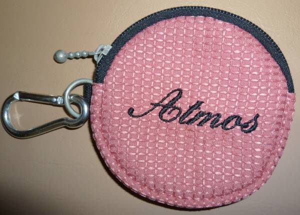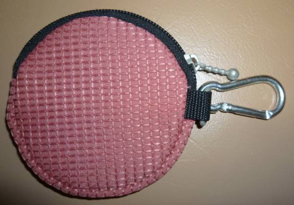 暗めのピンクに、同色の糸でステッチが施され大変手の込んだポーチになります。