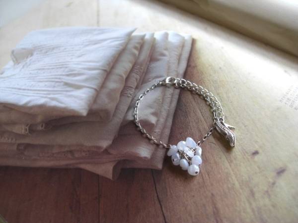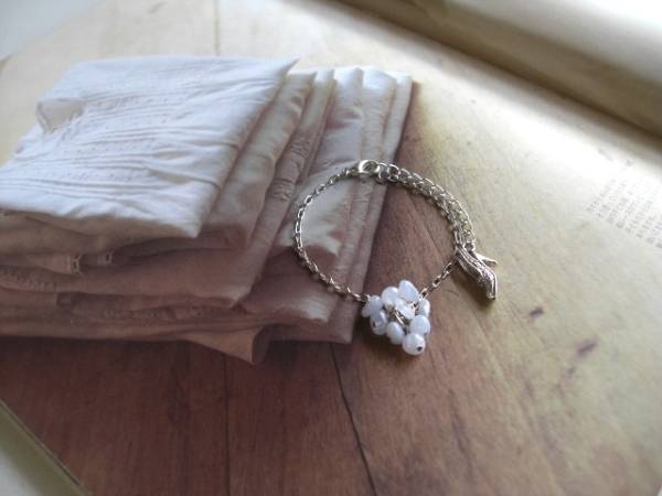 ロゼッタの宝石箱・・シリーズです♪アンニュイな水色・・繊細なブルーカルセドニーのブレスレットです♪ミニタンブルのブルーカルセドニーは淡い水色が可憐な表情です♪6ミリ位のミニタンブルのカルセドニーは小さなブーケのように集めてデザインチェーンを合わせました♪長さは16センチ+アジャスター6センチ位で最長22センチ位です♪お揃いのネックレスやピアスも出品しています♪シンプルで長く着けていただけるデザインを考えて作りました!ハンドメイドをご理解頂いてノークレーム、ノーリターンでお願いします