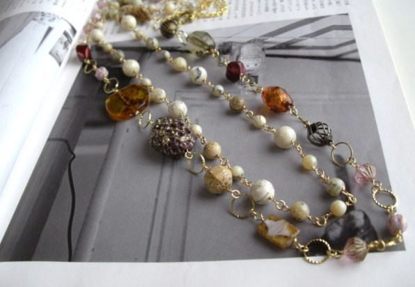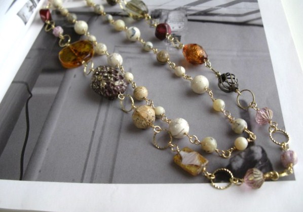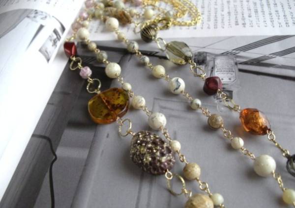 ニューヨーク・テイスト・・シリーズです♪薔薇の香り・・個性的な石を集めたネックレス2点セットです♪アフリカンオパールやピカソジャスパー、樹脂ビーズやチェコビーズ、デザインチャームを合わせてロマンチックな表情です♪アフリカンオパールのネックレスは6ミリ、8ミリ、10ミリの丸玉を紡ぎました。長さは102センチ位で調節自由です♪2連にされてもブレスにされても素敵です♪アートな模様のピカソジャスパーは12ミリのラウンドカットと10×30ミリのツイストナツメです♪8ミリから36ミリ位までのチェコビーズやイタリアビーズ、樹脂ビーズやデザインメタルを合わせました♪長さは全長107センチ位で調節自由です♪2連にされても素敵です♪それぞれ単品やお揃いのブレスレットも出品しています♪♪シンプルで長く着けていただけるデザインを考えて作りました♪ハンドメイドをご理解頂いてノークレーム、ノーリターンでお願いします