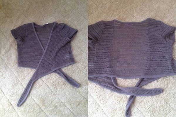 cana blueの前で結べるタイプのボレロカーディガンです。