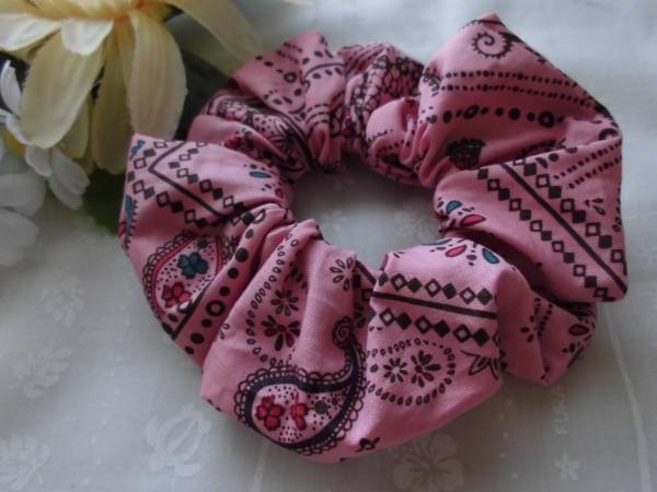 ★シュシュ★■ペイズリー■バンダナ柄■ピンク■