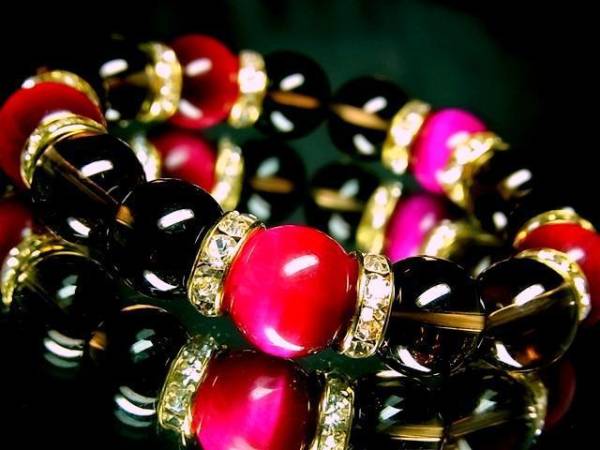 激シブ煙水晶とピンクタイガーアイの組合せでこの見事な数珠!