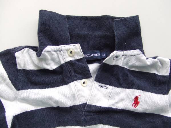 送料込み 中古 ラルフロ-レン ポロ 70センチ ボ-ダ- 紺&白 半袖