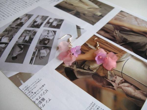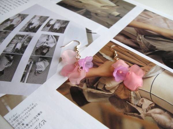 春の予感・・シリーズです♪花びらを紡いで・・淡いピンク、大人っぽいサーモンピンクやオフ・ホワイトなど表情の違うアクリルの花びらのピアスです♪ピンクゴールドの金具で紡いでやさしい表情です♪花びらやお花は12ミリ位です♪長さは5.5センチ位です♪イヤリングにも変更出来ます♪お揃いのネックレスやブレスレットも出品しています♪♪シンプルで飽きのこないいつまでも着けられるデザインを考えて作りました!ハンドメイドをご理解頂いてノークレーム、ノーリターンでお願いします
