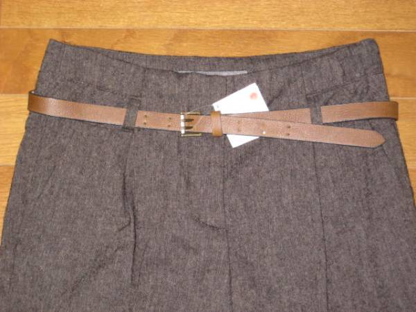 新品☆ザラZARAベルト付きウール2タックべーシックパンツ.茶,XS