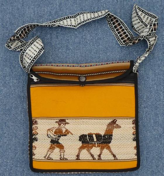 当商品は、ペルー民族織物(リャマ・インカ柄等)で作られたショルダーバッグです。