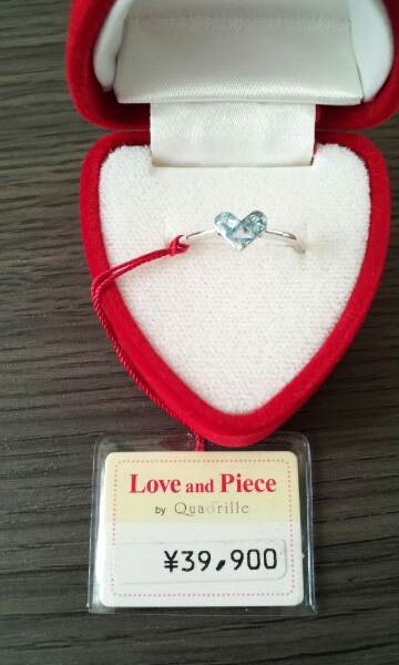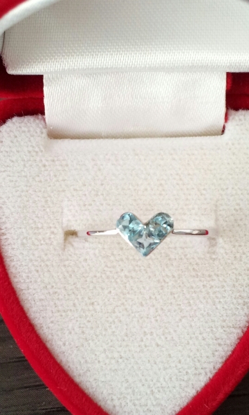 ブルートパーズの綺麗なカラーが、ハート型に光り輝いています。