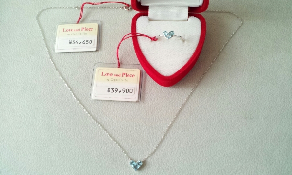 同じブルートパーズのハート型になったネックレスも出品しております。