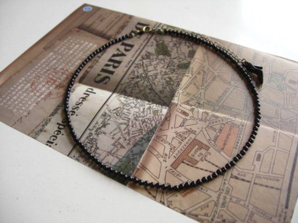 アンティーク仕様・・シリーズです♪大人色の黒・・シックな漆黒のオニキスのネックレスです♪丸玉のオニキスにデザインチェーンを合わせてクラシカルな表情です♪3ミリ位の丸玉のオニキスのネックレスは黒のハイヒールのチャームを添えて可憐な表情です♪長さは38センチ+アジャスター10センチで最長48センチ位です♪お揃いのネックレスやブレスレットも出品しています♪シンプルで長く着けていただけるデザインを考えて作りました!ハンドメイドをご理解頂いてノークレーム、ノーリターンでお願いします