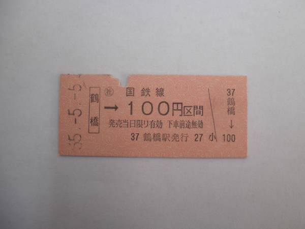 ☆硬券/国鉄/鶴橋~100円/65・5・5/7652☆