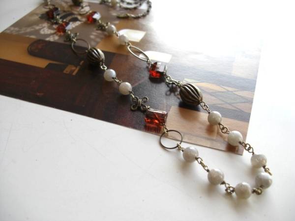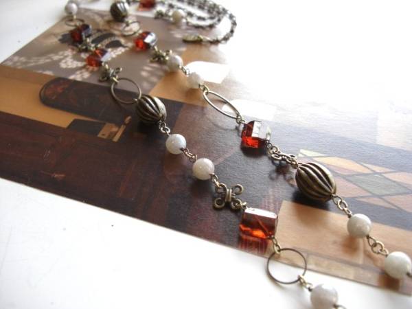 やさしさを紡いで・・シリーズです♪オリエンタル仕様・・神秘的なラブラドライトのネックレスです♪繊細なブルーグレーのラブラドライトに琥珀色のデザインビーズや透かしチャームを合わせてオリエンタル・モダンしています♪、ラブラドライトは6ミリ、8ミリの丸玉です♪長さは全長106センチ位で調節自由です♪2連にされても素敵です♪お揃いのブレスレットも出品しています♪シンプルで飽きのこないいつまでも着けられるデザインを考えて作りました!ハンドメイドをご理解頂いてノークレーム、ノーリターンでお願いします