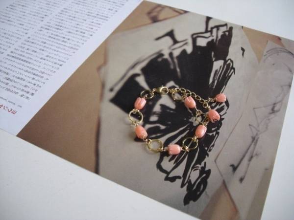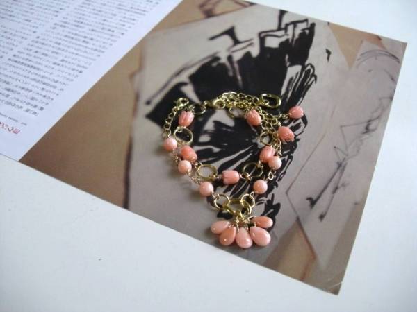 創作ノート・・シリーズです♪春色ピンクの章・・ナチュラルなサーモンピンクの珊瑚のブレスレット2点セットです♪丸玉やドロップやお花の珊瑚を集めてやさしい表情です♪ラリエット風のデザインは6ミリの丸玉、8ミリから11ミリ位のフラットドロップです♪トップにデザインリングを合わせました♪長さは全長23センチ位で調節自由です♪トップは3センチ位です♪お花の珊瑚は6から8ミリ位です♪デザインリングを合わせて可憐な表情です♪長さは全長23センチ位で調節自由です♪それぞれ単品やお揃いのネックレスやイヤリングも出品しています♪シンプルで飽きのこないいつまでも着けられるデザインを考えて作りました!ハンドメイドをご理解頂いてノークレーム、ノーリターンでお願いします