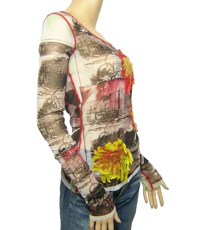 Jean Paul GAULTIER MAILLE FEMME のイタリア製、 別布刺繍チュールカットソーでございます。 伸縮性あり/透け感あり | |