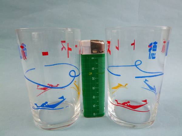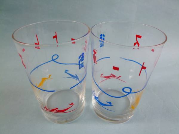 | 古い★徳山ボートレース・ガラスコップ2点セット・昭和レトロ★小欠け有り | |