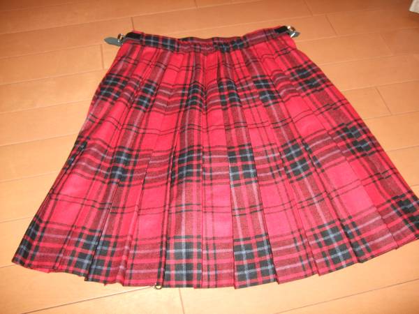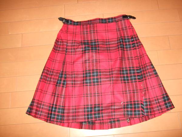 ユーズドですが、3、4回程度の着用で、回数少ないお品です。オニールオブアイルランドのチェックのプリーツスカート、サイズは38です。素材はウール65ポリエステル35です。赤系のタータンチェックで、ウエストの後ろ部分はゴムが入っていて伸縮するので、多少サイズの融通がききます。丈約50、ウエストは約64~です。セレクトショップなどでもたくさん扱いのあるオニールのお品、こちらもやはり品があり、大人の女性が素敵にはけるプリーツのチェックのスカートです。着用感、うっすらとした毛羽立ちなどは多少はありますが、全体的には良好なお品です。安全ピンのスカート留めがついています。