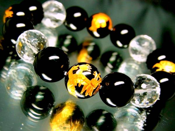 ◆◇四神獣オニキス§128面カット水晶12ミリ数珠◇◆  ゆうパケット送料無料 匿名発送