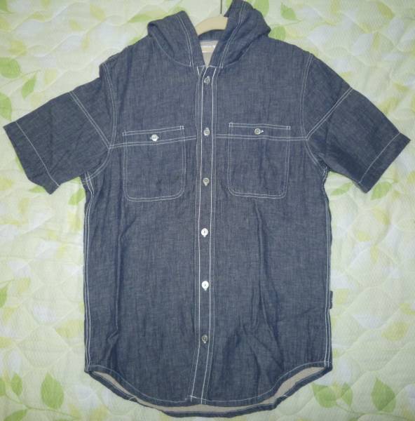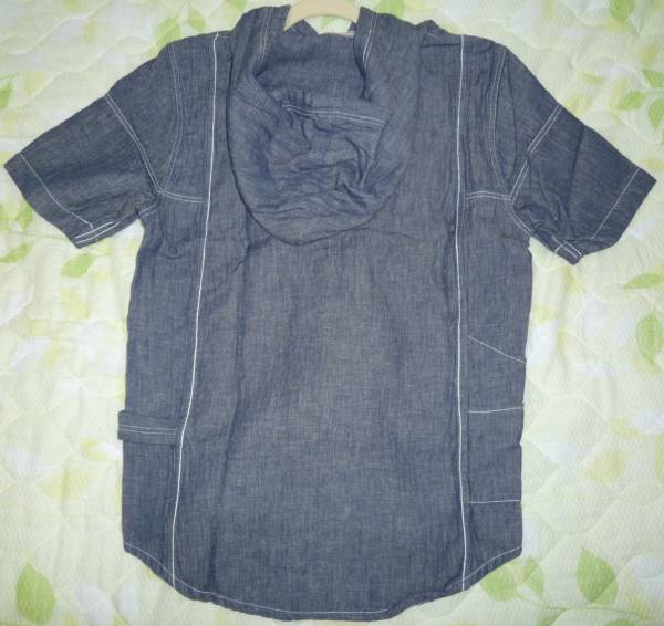 かなり手の込んだシャツになり、薄手のデニムのような感じの生地にフードが付き、両サイドにはペインターパンツのようにループ、もう片方には小さいポケットが二ついています。ボタンはシルバーになり細かい所にまでこだわったシャツになります。