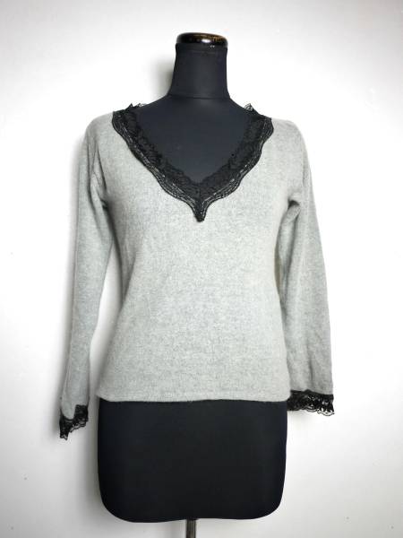 USED品正規品(ロイヤルアパートメント)のrith(日本製)の表地;アンゴラ42%・ナイロン38%・アクリル20%、レース;ナイロン85%・レーヨン15%のセーターです。