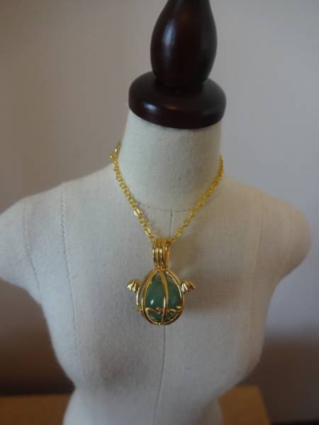 天使の卵(卵に羽がはえたデザイン)をモチーフにしているチャームの中に天然石が入っています。