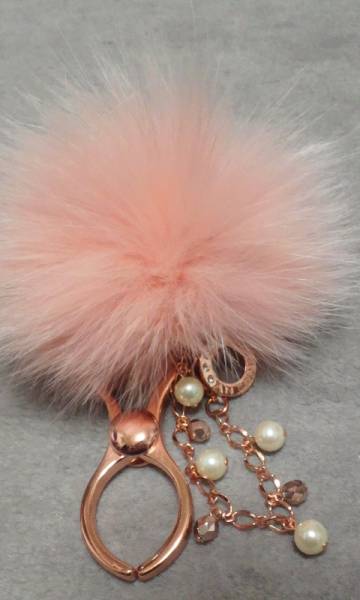 大きなフォックスファーのピンクのポンポンが可愛いです♪