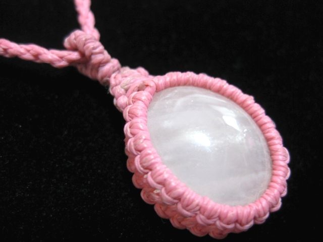 ★天然石ローズクォーツ★マクラメ編み蝋引きネックレスkamesan