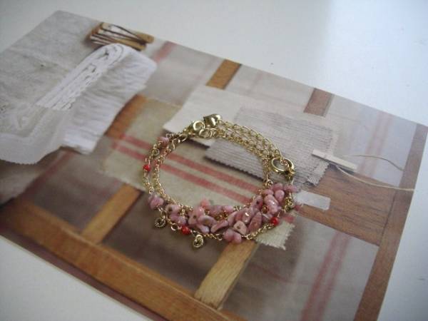 物語を紡いで・・シリーズです♪シックな薔薇色・・繊細なインカローズと赤の珊瑚のブレスレット2本セットです♪シックな縞模様のインカローズのミニタンブルと小粒の赤珊瑚が可憐な表情です♪真ん中のブレスレットは4ミリから5ミリ位のインカローズを華奢なチェーンに繋いでいます♪長さは全長23センチ位で調節自由です♪右側のブレスレットはインカローズと4ミリの赤珊瑚の丸玉にメタルチャームを合わせました♪長さは23センチ位で調節自由です♪それぞれ単品やネックレスやイヤリングも出品しています♪シンプルで飽きのこないいつまでも着けられるデザインを考えて作りました♪ハンドメイドをご理解頂いてノークレーム、ノーリターンでお願いします