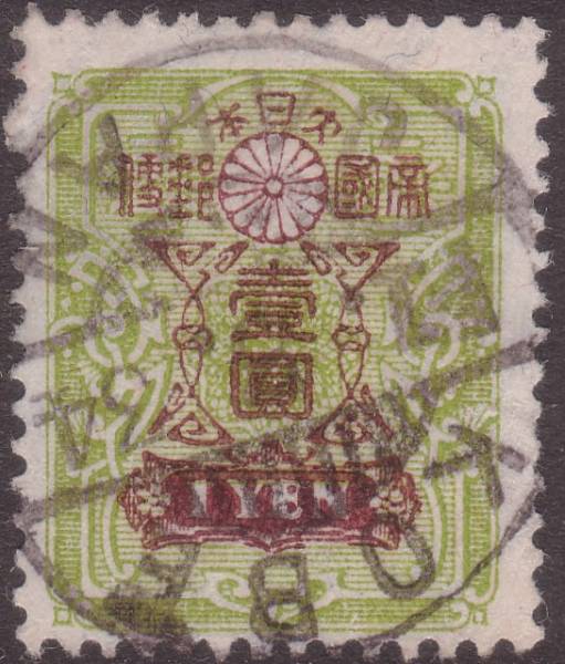 田沢新大正毛紙1円 欧文櫛型印 KOBE/11.3.34/JAPAN