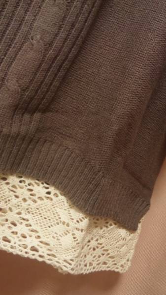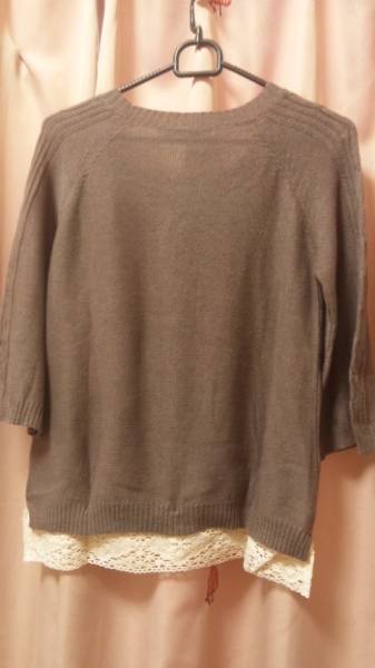 ◆取り外し可能な裾カギ編みレースが可愛い七分袖ニット♪袖幅もゆるめで秋冬は重ね着♪薄手ニットなので初夏にも