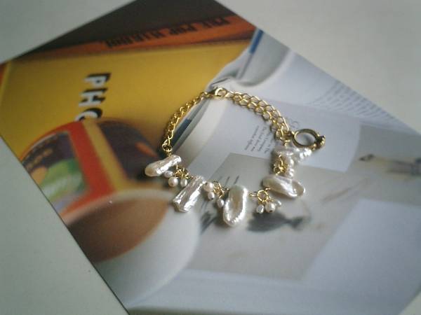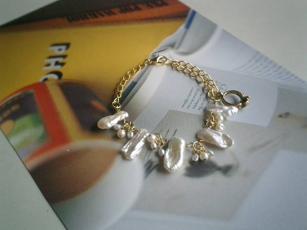 やさしい色を+して・・シリーズです♪週末の幸せ・・繊細なビワパールのブレスレットです♪ふんわりやさしいオフホワイトのビワパールに小粒の淡水パールを添えてロマンチックな表情です♪ビワパールは13ミリから22ミリ位までです♪3ミリ、4ミリの淡水パールでおめかしいています♪長さは全長23センチ位で調節自由です♪♪お揃いのネックレスやピアスも出品しています♪シンプルで長く着けて頂けるデザインを考えて作りました♪♪ハンドメイドをご理解頂いてノークレーム、ノーリターンでお願いします