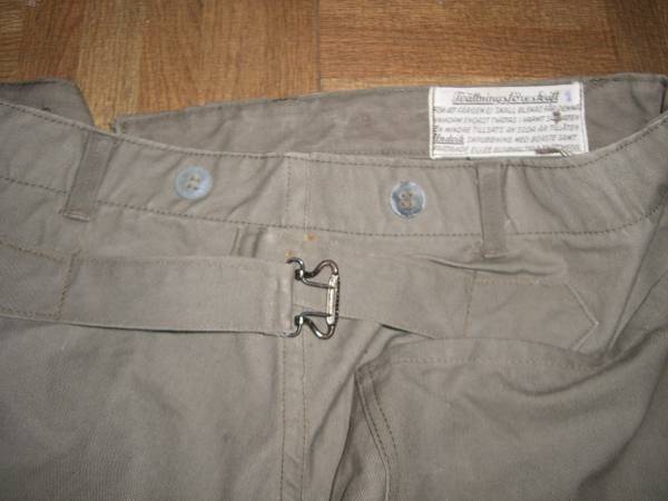 こちらは、おそらく40年代位のヨーロッパのミリタリーもしくはワークパンツになります。サスペンダーメタルボタン。片ポケ。シンチバック。カッコイイのでオススメです。裾に一周、ハトメが打ってあります(オリジナル)。▽サイズ (平置き実寸ウエスト42cm、股上36cm、股下81cm、裾幅27cm、ひざ幅30cm)素人採寸になりますので多少の誤差はご了承下さい。使用感(多少、シワのような色抜け 画像参照)はありますが、これからもまだまだ着用して頂けると思います。ビンテージになりますのでご理解ある方のみ入札お願いします。▽古着の為、ノークレーム、ノーリターンでお願い致します。発送方法は、ゆうパック着払いのみのお取り扱いとさせていただきます.どうぞよろしくお願いします。
