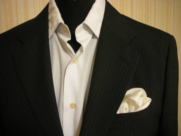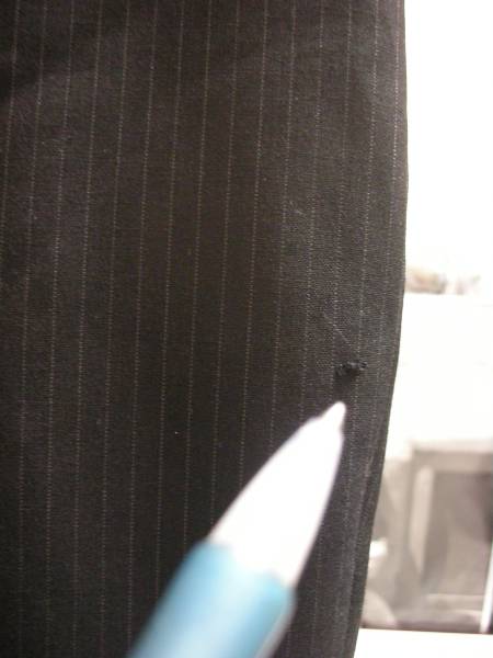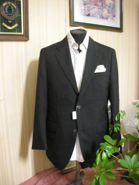 | いろんなシチュエーションに役立つ 一着は持っていたい エレガントな 黒縞柄ジャケットです。 前 2ボタン 袖 3ボタン です。 ブラック色地に 6mm間隔のグレー色のペンシルストライプ織柄です。 しっかりしたシルキーでしなやかなサラッとした薄地です。生地は ドレス感のある毛混素材で 毛 50% ポリエステル 50% の生地です。エレガントなディテール センターベントデザイン です。機能的内ポケット、サイド脇フラップ付きポケット仕様です。 サイズ(人体採寸)は 肩幅 42,5cm 着丈 72cm 身幅(脇下) 51,5cm 身幅(胴部分) 48,5cm 袖丈 56,5cm ラペル幅 8cm のノッチドラペル です。適応サイズ表示は 胸囲 90cm 胴囲 78cm 身長 165cm 90 A-4 です。 そして 念の為 各部分のサイズ数値を 必ず 吟味 ご確認下さい。勿論 新品です。タイドアップでも スポーツシャツ タートルセーター等にも エレガントなオシャレモードとなります。ただ 三番目画像で示す様に 左袖肘部分にキズ有りのジャンク品です。普段着 作業衣 等として ご活用下さい。それ故 超安値の処分価格スタートとなります。よって お買い得となっております。尚 毎週木曜日は業務定休日で御座います。ご連絡、ご発送とも木曜明けの金曜日にずれ込む事 ご了承下さい。 |