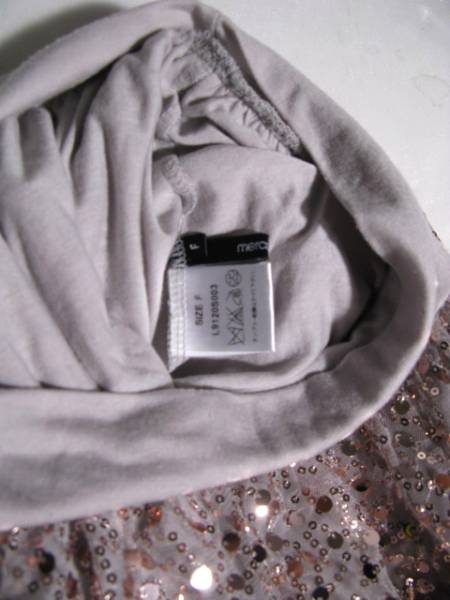 USED品正規品(MARK-STYLER)のマーキュリーリュクス(韓国製)のスパンコールの付いた、表地;ポリエステル100%、別地;レーヨン85%・ポリエステル15%のスカートです。